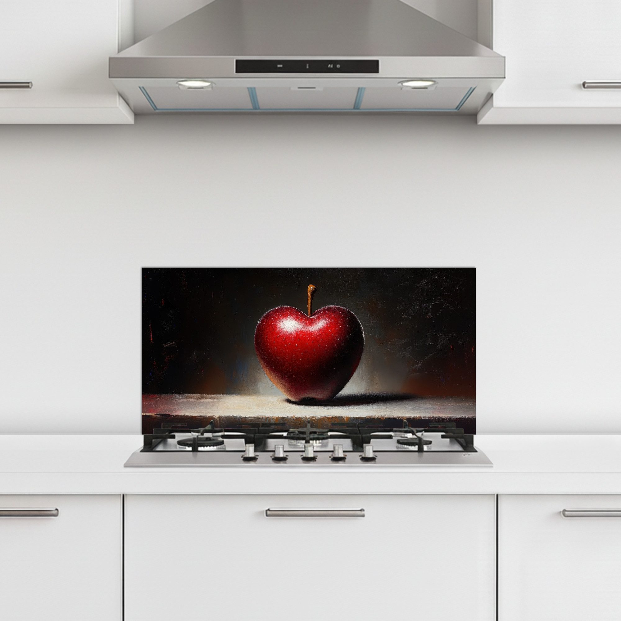 Ein leuchtend roter Apfel in Form eines Herzens, präsentiert auf hellem Hintergrund mit dezent dunklem Hintergrund.