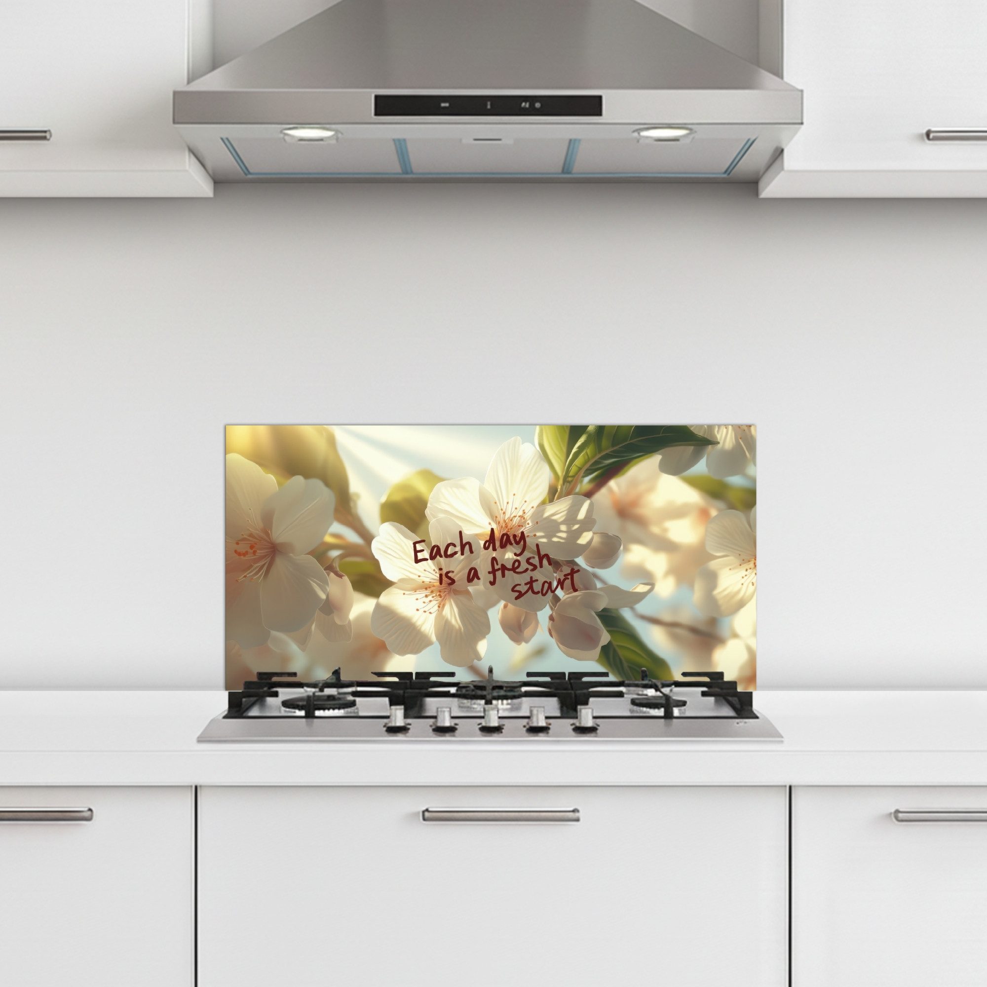 Die Küchenrückwand besteht aus strapazierfähigem, PVC-freiem Material, das hitzebeständig, wasserabweisend und UV-beständig ist. Die Glasoptik sorgt für einen modernen und eleganten Look, ohne die Bruchgefahr von echtem Glas.