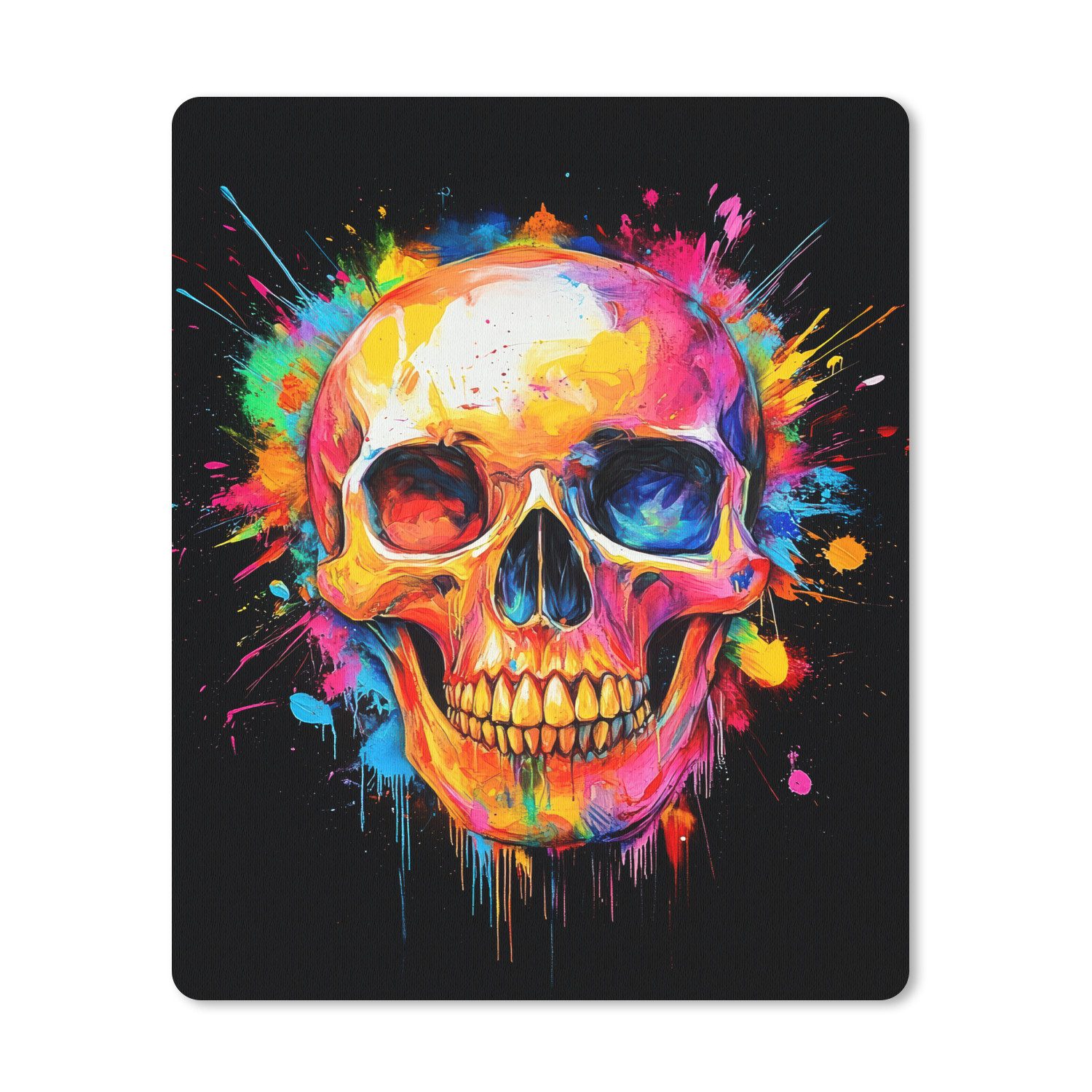 Bunter Totenkopf mit einer Farbexplosion im Hintergrund