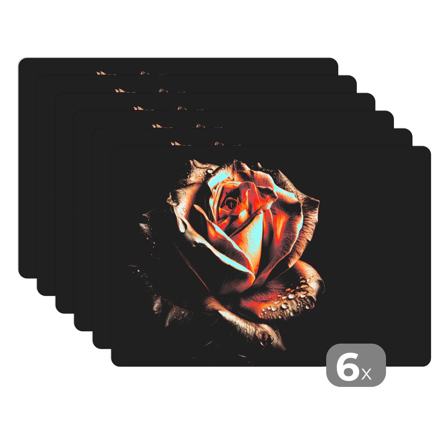 Die Tischsets von MuchoWow verhindern auf stilvolle Art und Weise das Verschütten von Speisen auf dem Tisch. Das Tischset ist aus hochwertigem Vinyl gefertigt. Das Tischset ist leicht zu reinigen. Mit einem feuchten Tuch ist das Tischset bereit für die nächste Mahlzeit oder Bastelparty. Die Unterseite des Tischsets ist mit hitzebeständigem Vinyl versehen, so dass Sie Teller mit heißen Speisen sicher auf Ihrem Tischset abstellen können. Dieses Set besteht aus 6 Tischsets