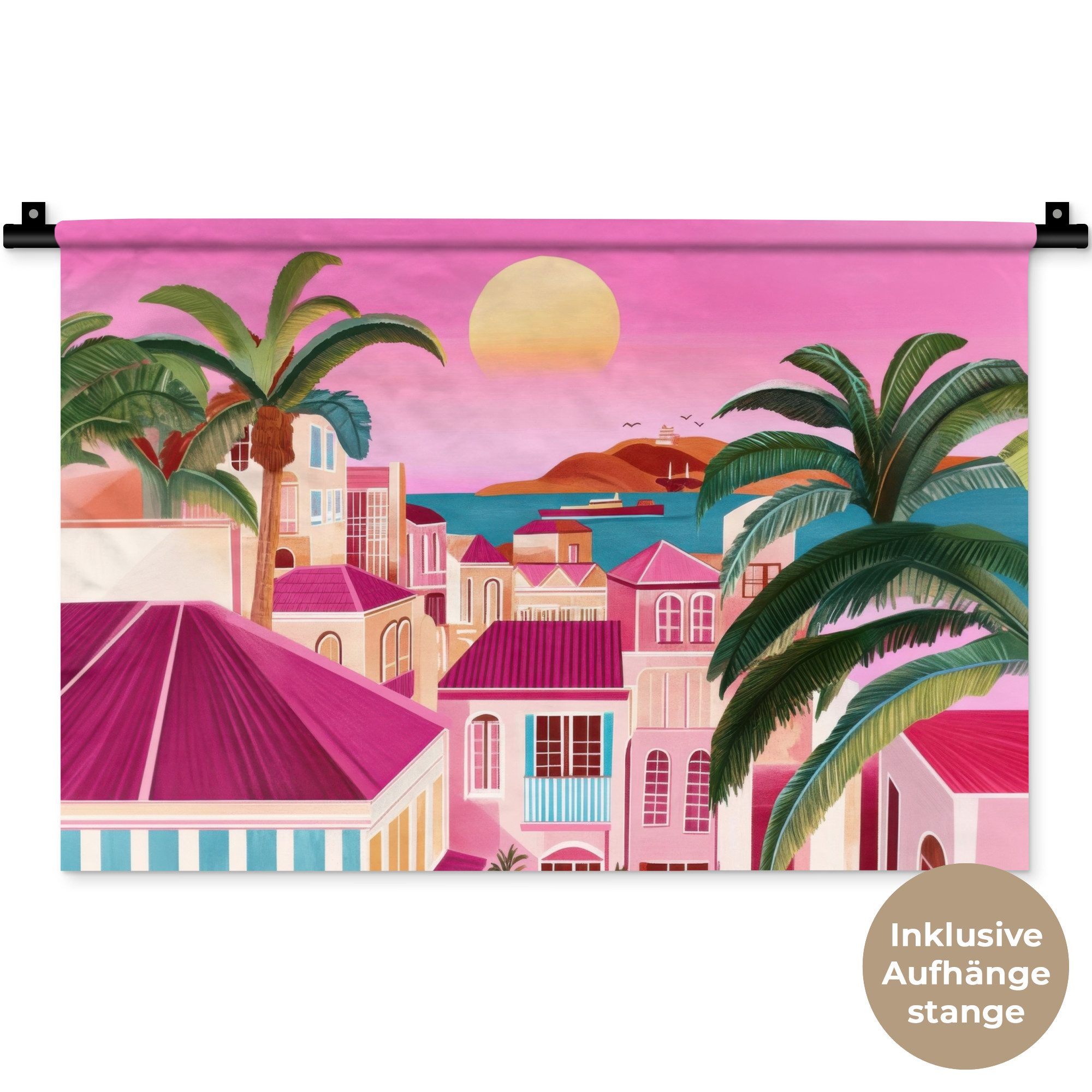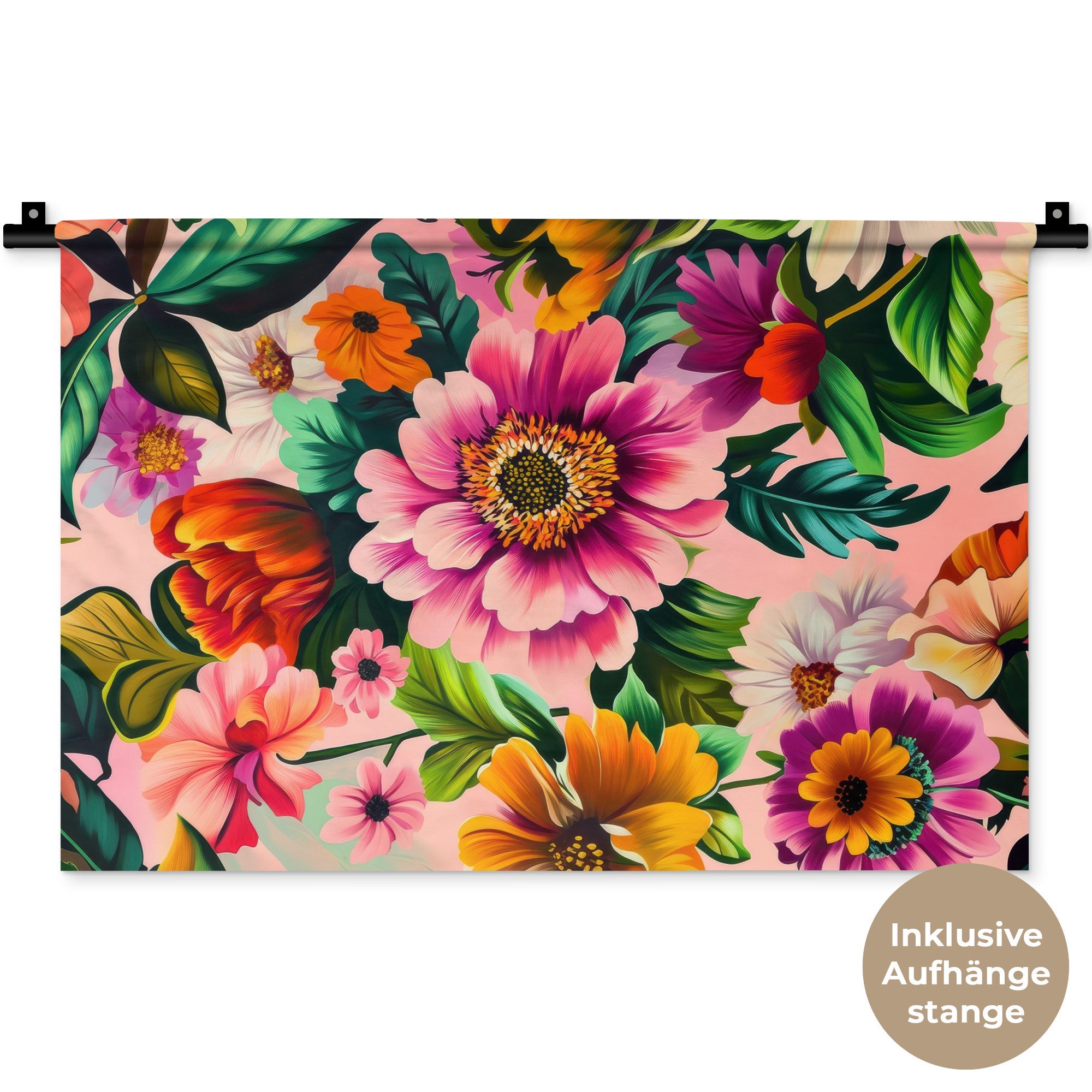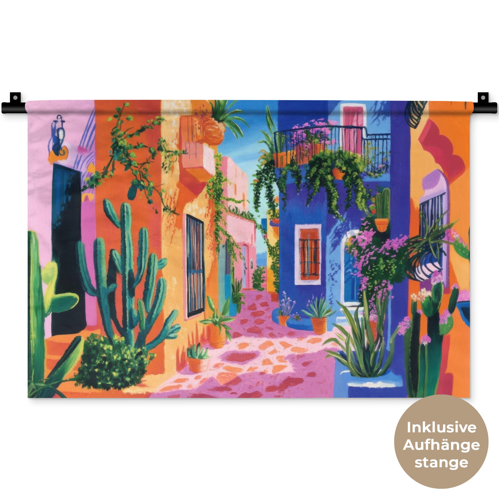 Der Wandteppich besteht aus robustem und strapazierfähigem Material. Er eignet sich hervorragend, um Ihrem Zuhause zusätzliche Atmosphäre und Wärme zu verleihen. Der Druck ist gestochen scharf mit leuchtenden Farben und sorgt für eine beeindruckende Wirkung. Die mitgelieferte Aufhängestange macht das Anbringen besonders einfach.