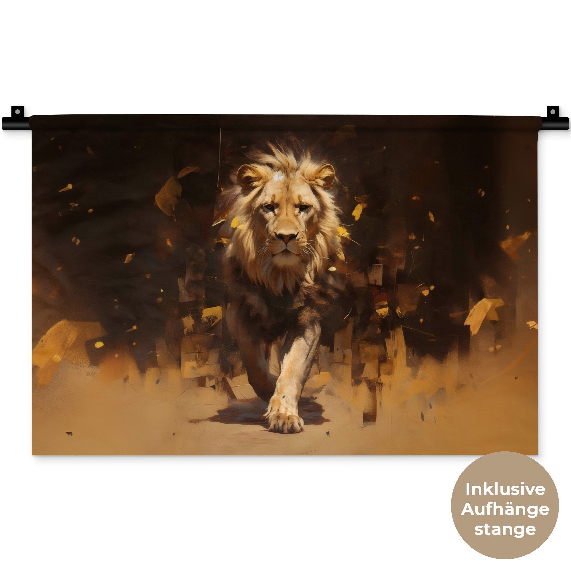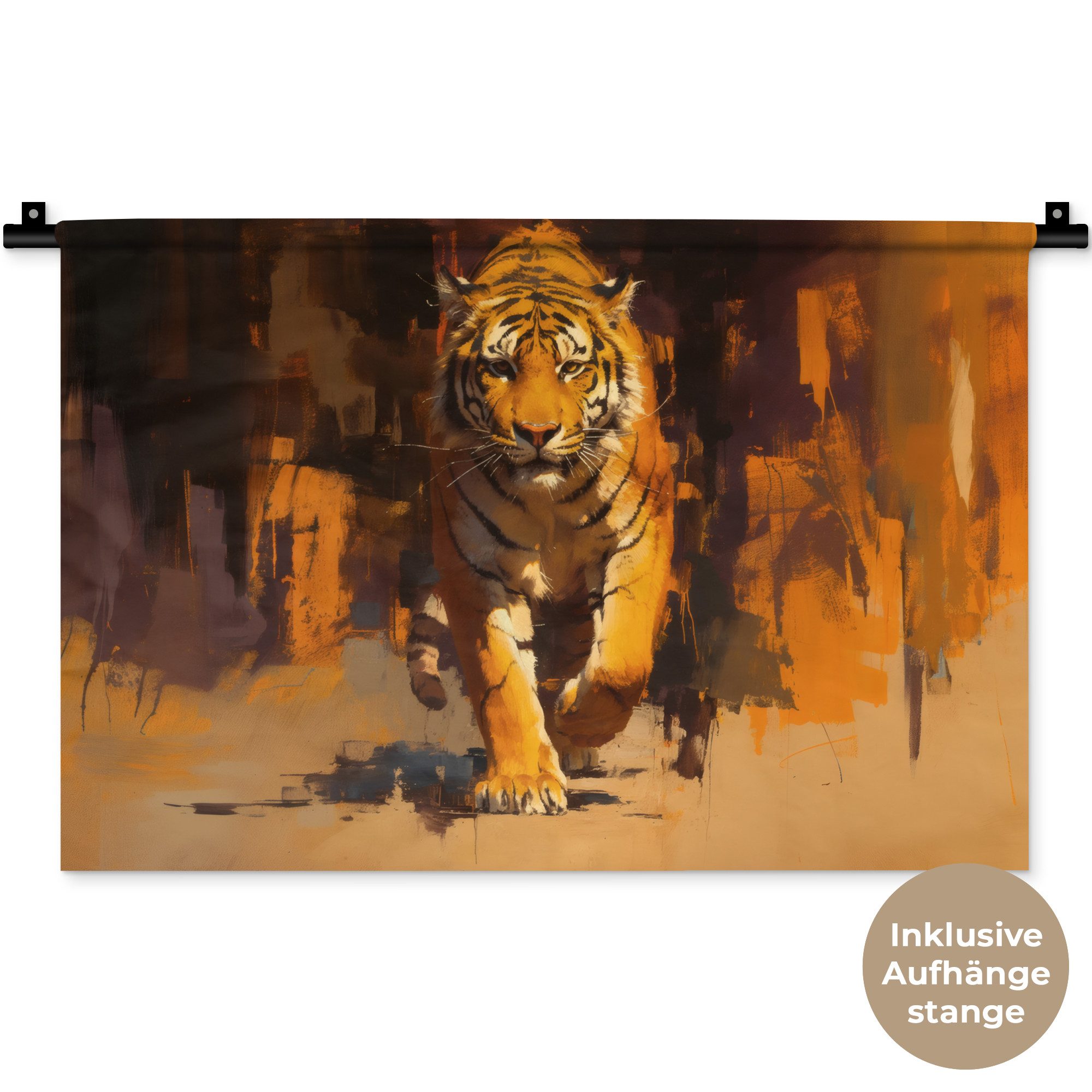 Der Wandteppich besteht aus robustem und strapazierfähigem Material. Er eignet sich hervorragend, um Ihrem Zuhause zusätzliche Atmosphäre und Wärme zu verleihen. Der Druck ist gestochen scharf mit leuchtenden Farben und sorgt für eine beeindruckende Wirkung. Die mitgelieferte Aufhängestange macht das Anbringen besonders einfach.