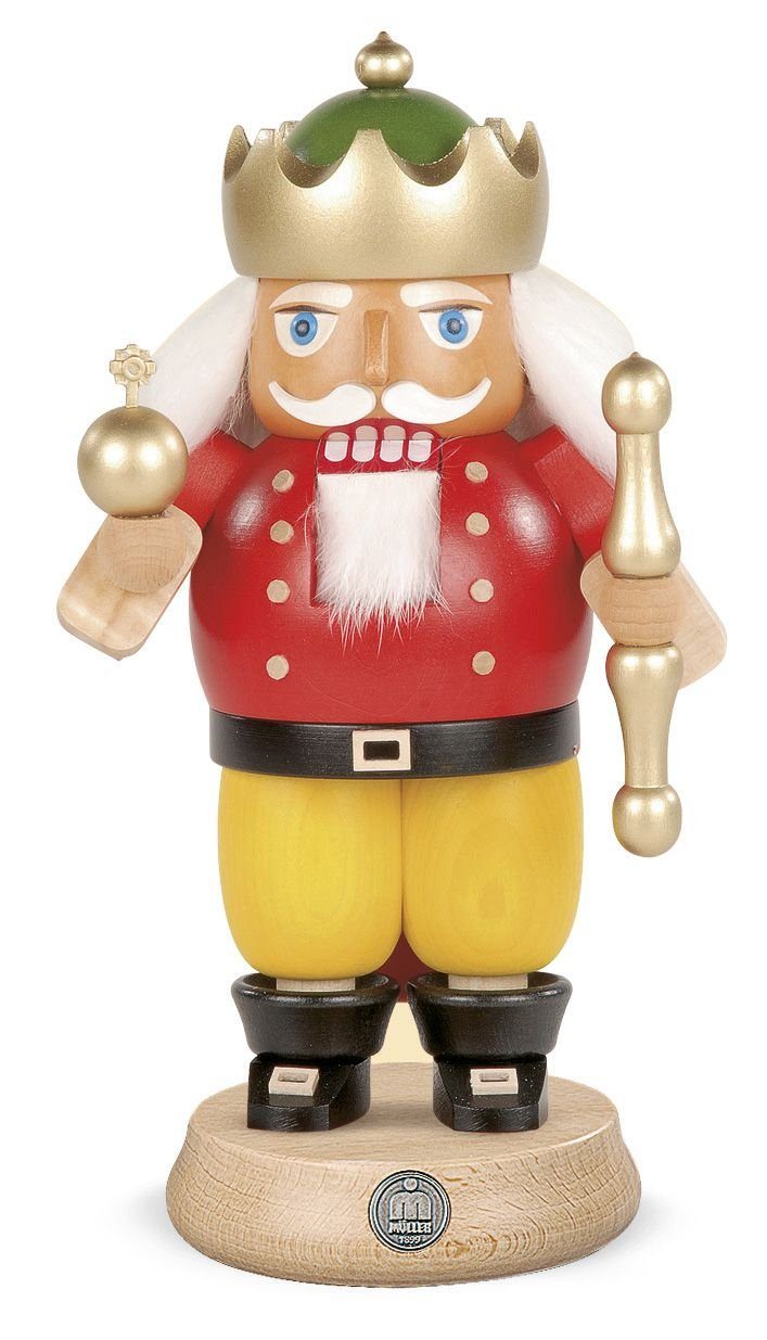 | Nutcracker Nussknacker König Nussknacker aus Holz, die die Nüsse mittels Hebeltechnik in ihrem Mund knacken, werden besonders in der Weihnachtszeit als Dekoration aufgestellt. Holen Sie sich einen ganz besonderen Nussknacker der in verschiedenen Arbeitsschritten komplett in Seiffen in einer Firma mit langer Tradition gefertigt. Das oft grimmige Aussehen der Nussknackergesichter soll an die damalige Obrigkeit erinnern. Mit unserem Nussknacker König holen Sie sich ein Stück Erzgebirge in Ihre weihnachtliche Stube. Auf dem Kopf trägt er eine goldne Krone. Er hält in der rechten Hand den Reichsapfel und links sein Zepter. Seine Haare und der Bart bestehen aus weichem Kaninchenfell (BxH):12x23cm NEU |