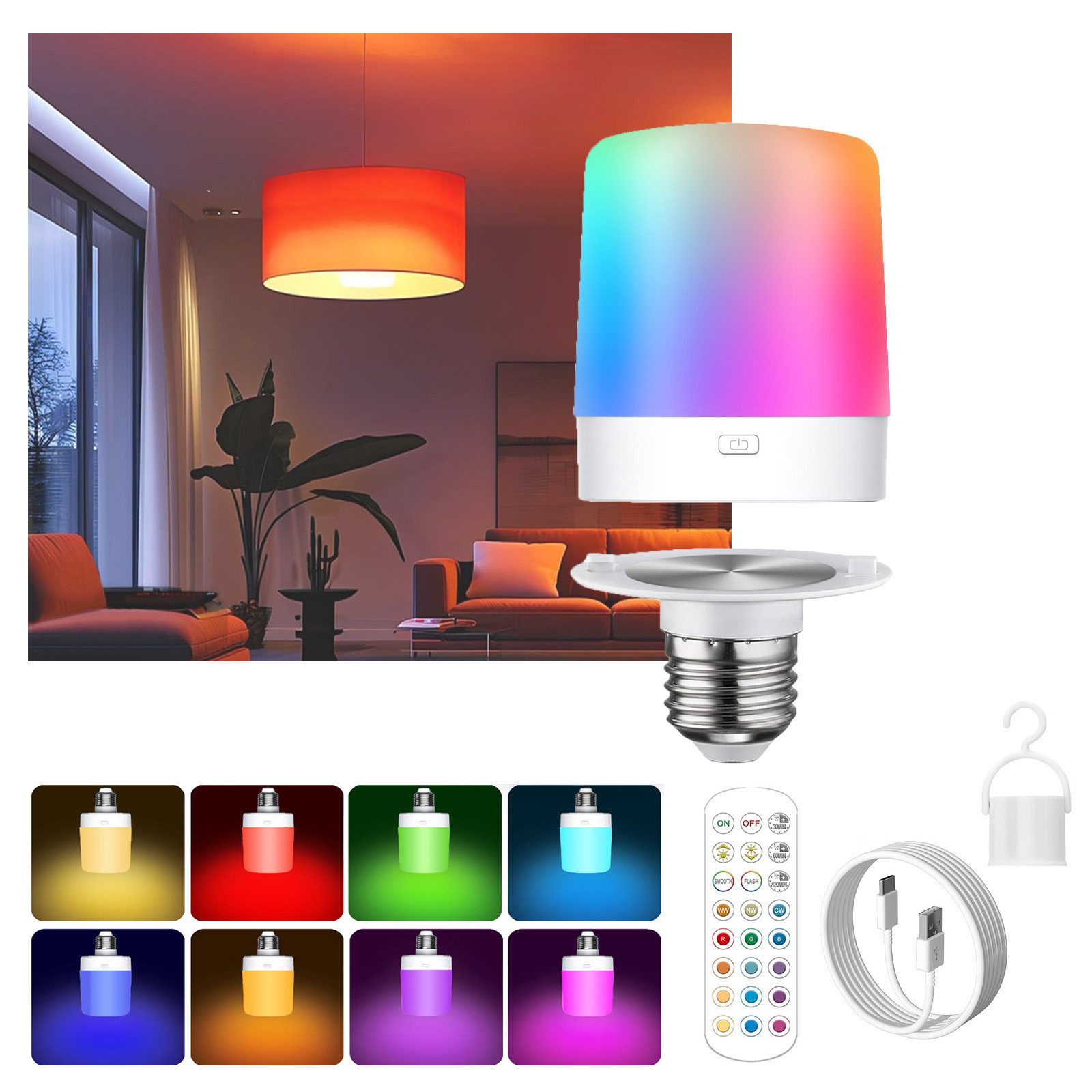 RGB-Helligkeit: 200 lm für kaltweißes Licht/warmes Licht/natürliches Licht, 150 lm für RGB-Farblicht