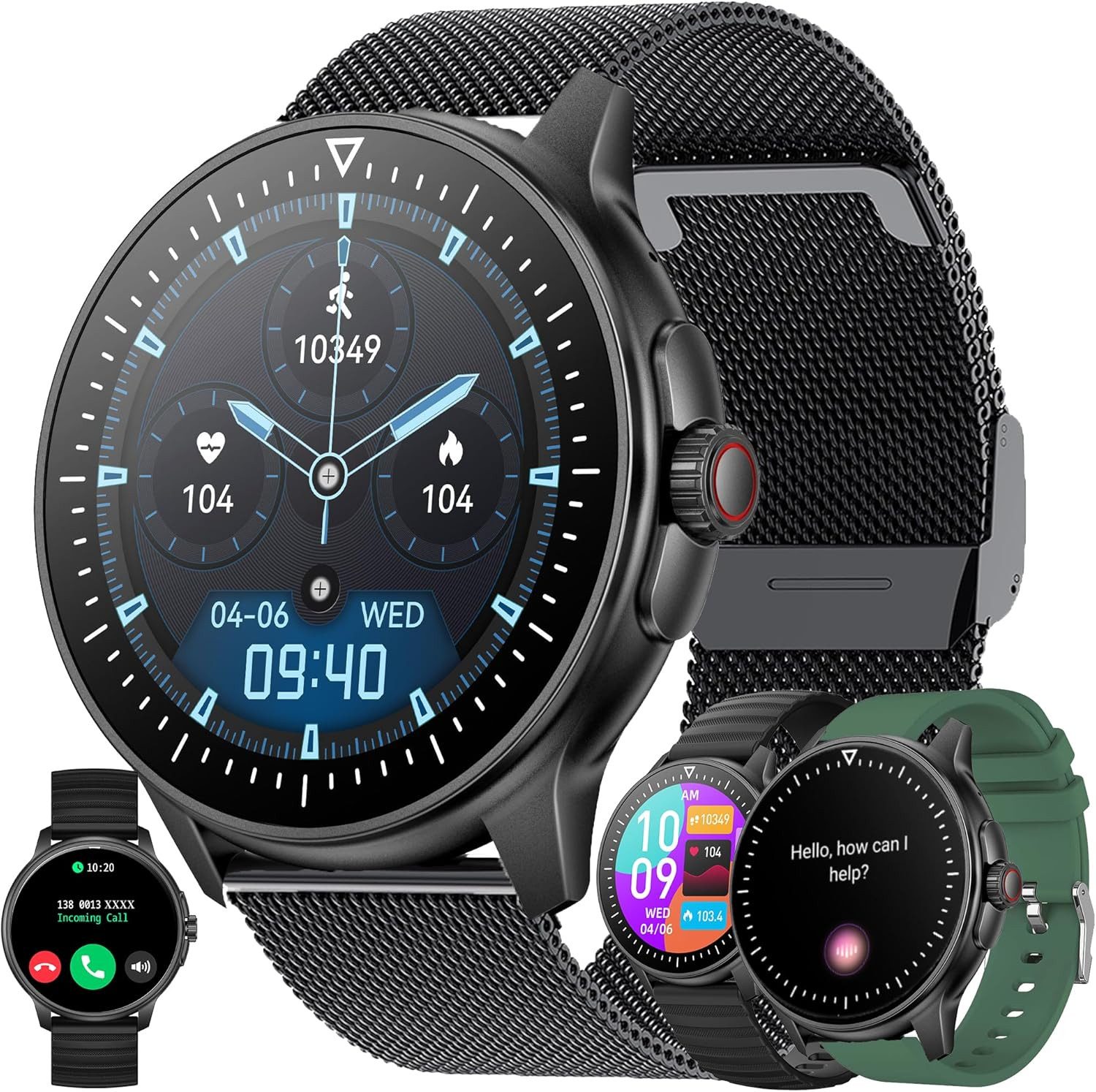 Das 1,39 Zoll große Farbdisplay mit 360 x 360 Pixeln bietet gestochen scharfe Darstellungen, natürliche Farben und eine präzise Touchfunktion. Die Benutzeroberfläche kann mit einem eigenen Bild personalisiert werden. Drei elegante Armbänder – Edelstahl und zwei Silikonbänder – sorgen für stilvolle Vielfalt bei Sport, Alltag oder besonderen Anlässen.