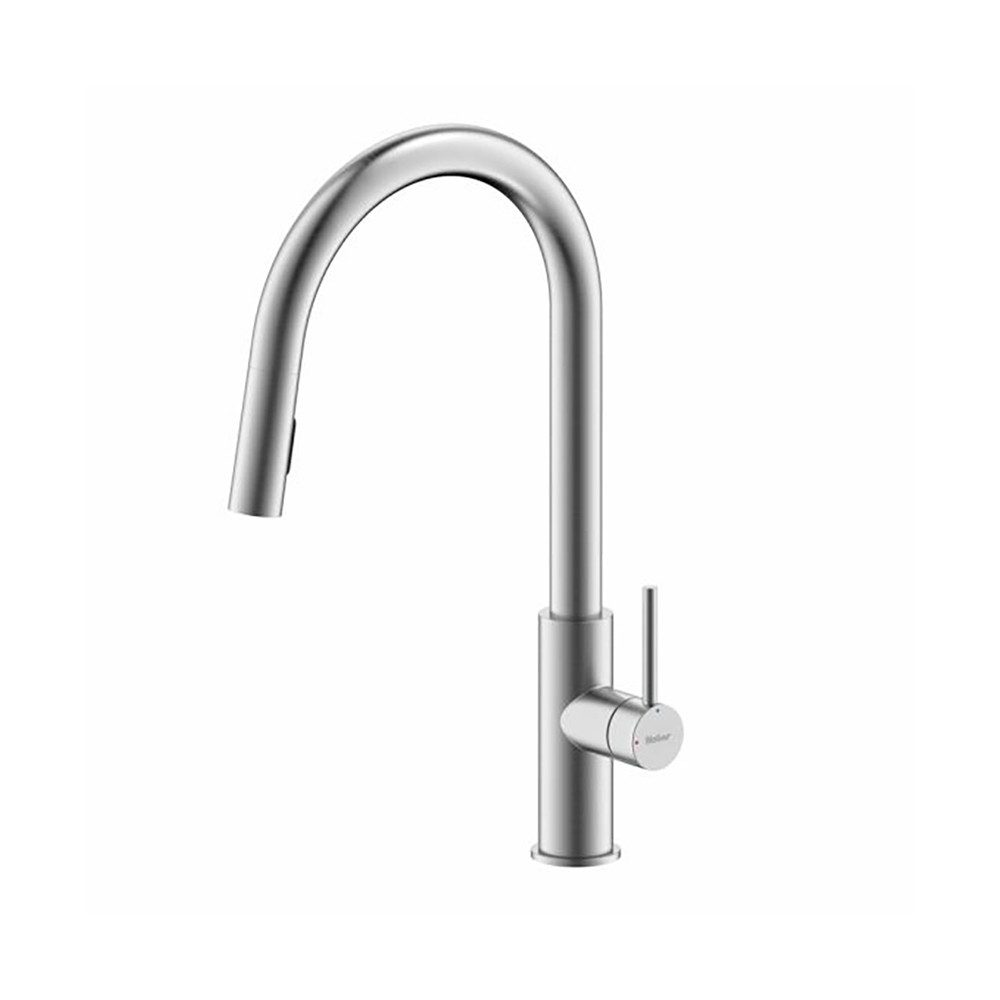 in langlebiger und pflegeleichter Qualität aus Edelstahl gefertigt wird. Zu den praktischen Komfortdetails zählt der ausziehbare Auslauf sowie die Umstellmöglichkeit der Strahlarten zwischen Strahl und Brause.