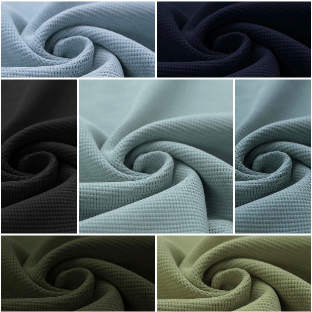 Waffelstrick Jersey ist ein Strickstoff mit schönem Waffelmuster. Der Stoff wird mit sehr langen Fäden zusammengestrickt, damit er nach dem zuschneiden nicht ausfranst. Da Baumwolle ein Naturprodukt ist, können Sie diesen dehnbaren (4-Wege-Stretch) Stoff zum nähen von (Kinder-)Kleidung von Jung bis Alt verwenden. ... ein schöner Pullover oder eine Babyhose, neben Kleidung wird der Waffelstrick Jersey auch gerne zu Dekorationszwecken verwendet, zum Beispiel als Babydecke, Kissen oder Schal. Die gewünschte Länge kann über die Eingabe im Feld „Anzahl“ erworben werden. *** je 1 Artikelanzahl werden 0,5m ausgeliefert (Beispiel: bei Anzahl 2 = 1,0m , bei Anzahl 3 = 1,5m , bei Anzahl 4 = 2,0m) *** Material: 100% Baumwolle Breite: 150 cm Gewicht: 300 g/m² hergestellt in: Türkei