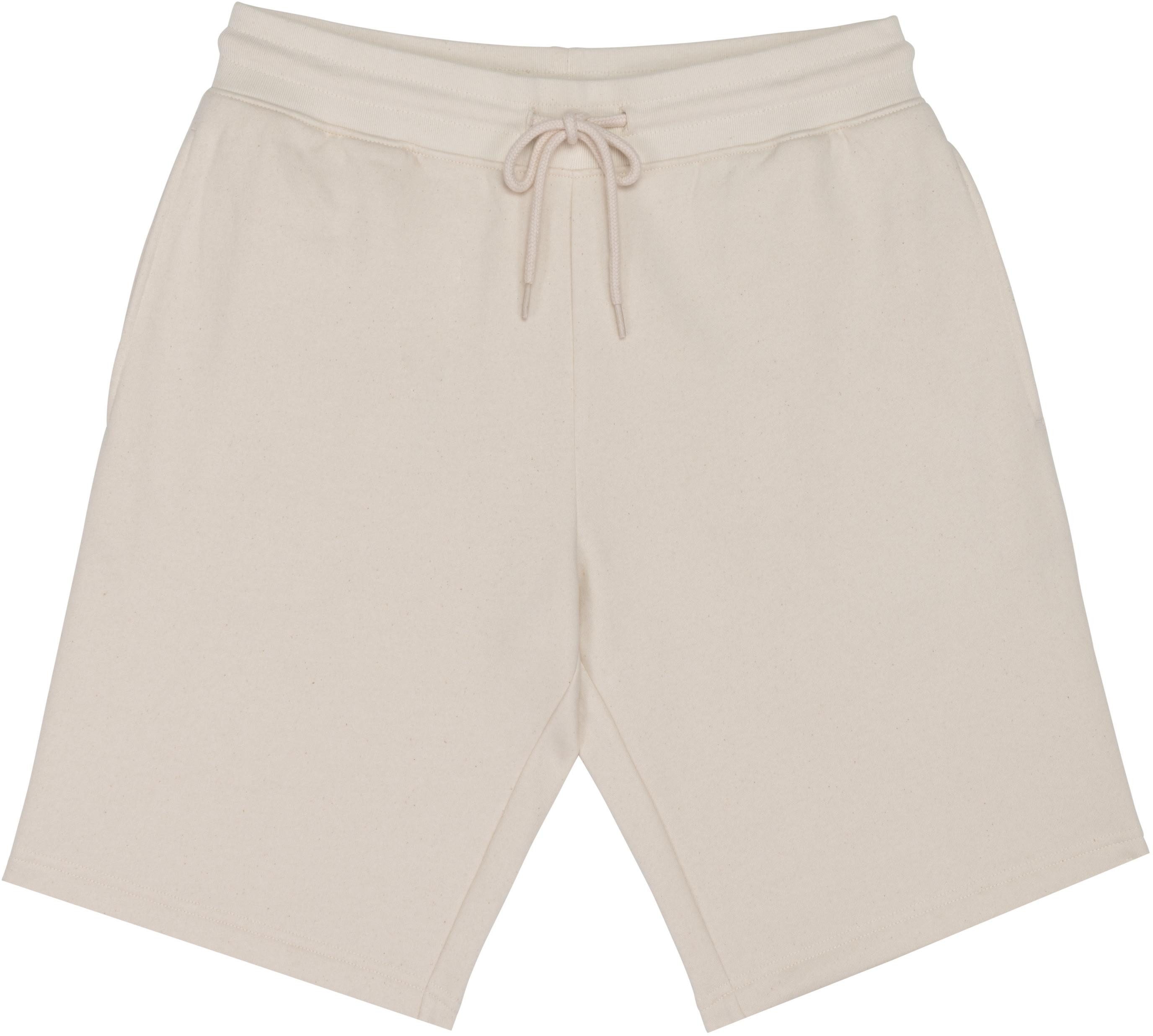 85 % Bio-Baumwolle / 15 % recyceltes Post-Consumer-Polyester. Gekämmte Ringspun-Baumwolle. Enzymwäsche. Gebürstetes Molton, 3-fädiges LSF (Low Shrinkage Fleece). Hüftbund aus 1 x 1-Rippstrick mit Kordelzug. Knopfloch für Kordelzug am Hüftbund. Seitliche Taschen. 1 Gesäßtasche mit Paspel. Doppelt gesteppte Naht am Hosenbeinende. Die Farbe Raw Natural zeichnet sich durch ihr optisch strukturiertes, rohes Aussehen aus, durchsetzt mit feinen Partikeln, die mit bloßem Auge sichtbar sind.