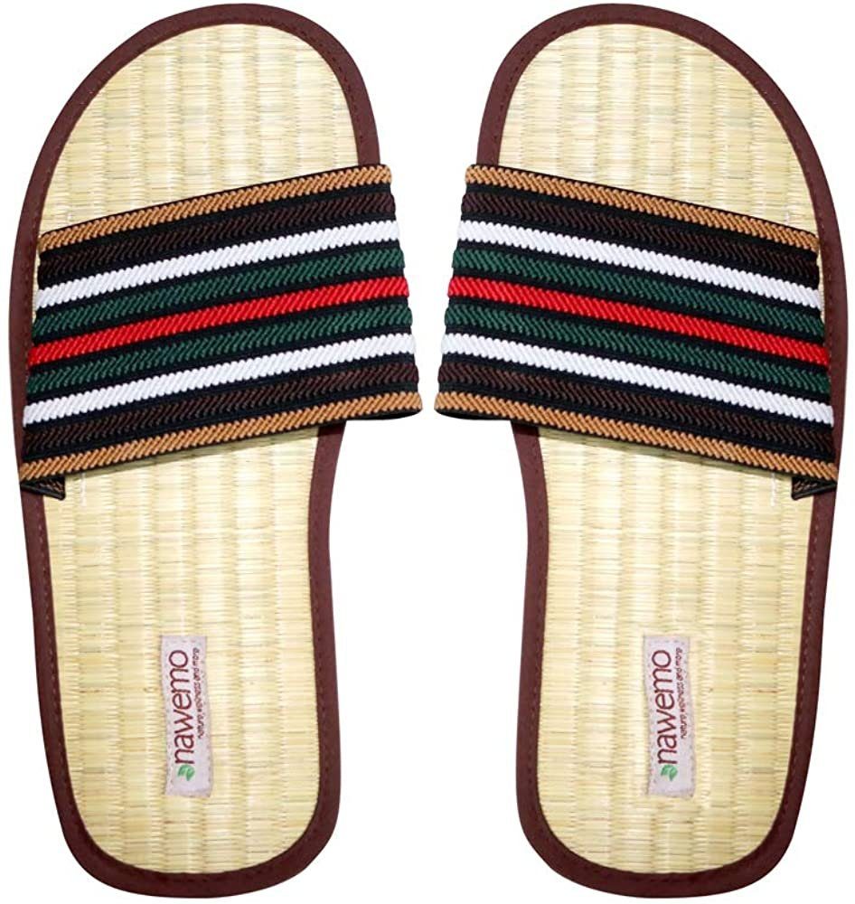 Diese Zimtlatschen von Nawemo sind in einem klassischen Design aufgemacht und strahlen doch Raffinesse aus. Der breite Riemen ist aus elastischem Garn. Dies verleiht den Nawemo-Zimtlatschen ein angenehmes Tragegefühl und einen sicheren Halt im Zimtlatschen. Das Fußbett besteht aus natürlichem seegras. Die Sohle der Zimtlatschen von Nawemo ist mit diversen Akkupressurpunkten versehen. Diese regen nicht nur den Blutkreislauf an, sondern stimulieren auch viele weitere Punkte der altchinesischen Heilmethode der Akkupressur. Den größten Nutzen zieht man(n) jedoch aus dem in der Sohle verarbeiteten Zimtpulver. Je nach Größe zwischen 30-40 Gramm. Dank der geruchsabsorbierenden Wirkung gehört unangenehmer Fußgeruch der Vergangenheit an. Für einen rutschfesten Stand ist die Sohle grob profiliert. Dieses Modell wurde aus folgenden Materialien gefertigt: Obermaterial: elastisches Garn Fußbett: Seegras Füllung: Zimtpulver Laufsohle: weiche Gummisohle Hinweis: Den Kontakt mit Wasser meiden. Dieses Modell passt nicht zu Ihnen? Wählen Sie in unserem Shop aus ca. 50 Modellen das zu Ihnen passende aus. Viel Spaß beim Stöbern.