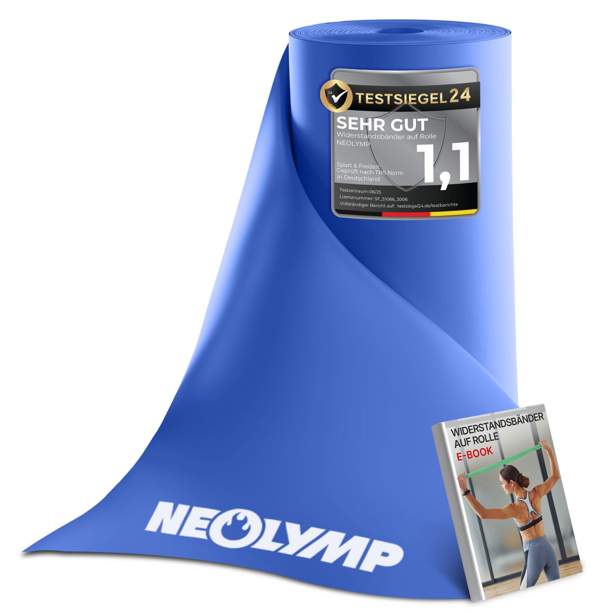 Widerstandsband auf Rolle (je nach Variante: 2,5 m / 23 m / 46 m) Digitales Trainings-E-Book Zugang zu 1.000+ Videoübungen NEOLYMP Trainingsanleitungen & Anwendungstipps