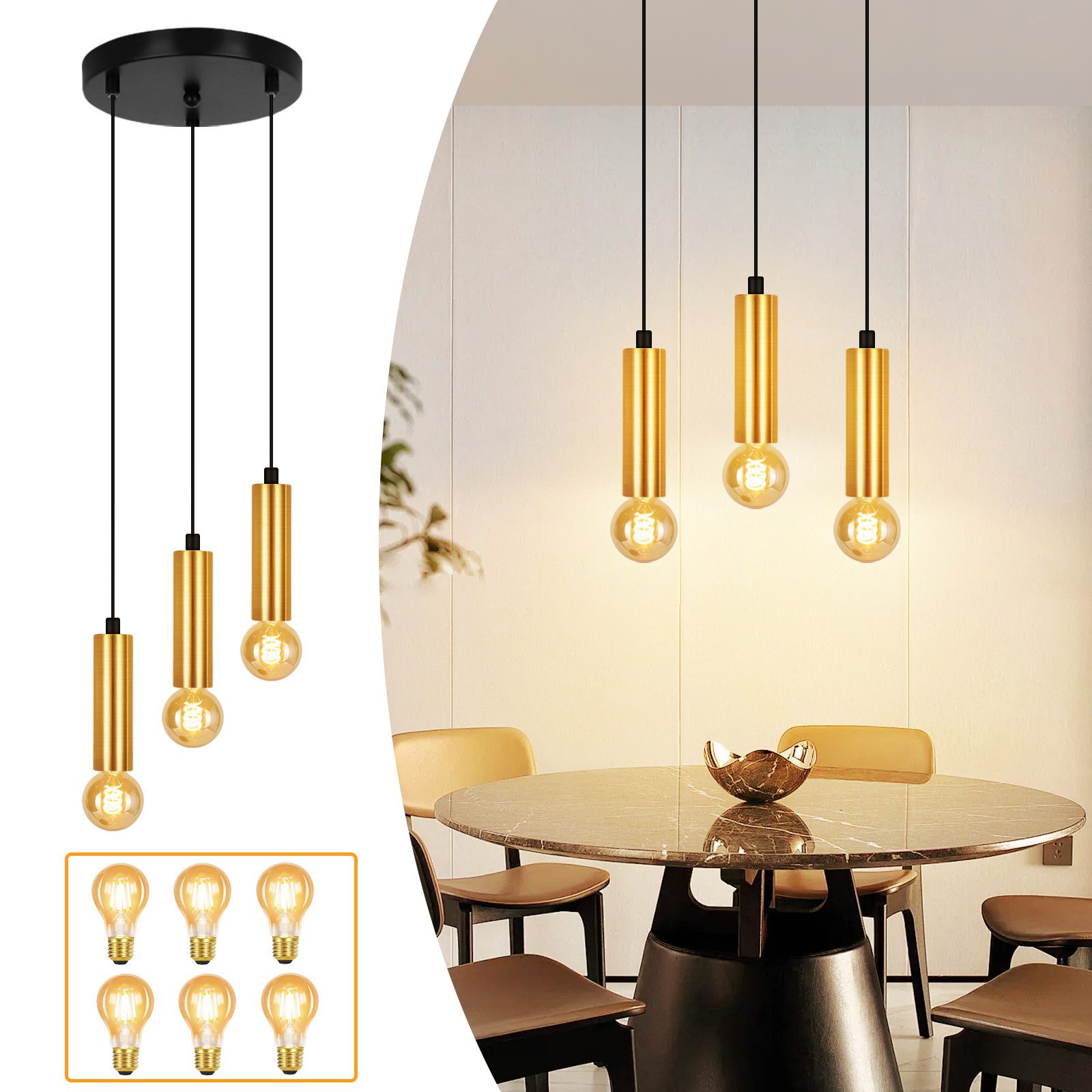 Hochwertiges Metallmaterial: Diese lampe esszimmer ist aus Metall gefertigt und in Gold lackiert, das nicht leicht zu rosten ist. Elegante und zarte Linien schaffen eine wunderbare Atmosphäre, während pendelleuchte industrial Ihren Raum mit künstlerischem Flair füllen.