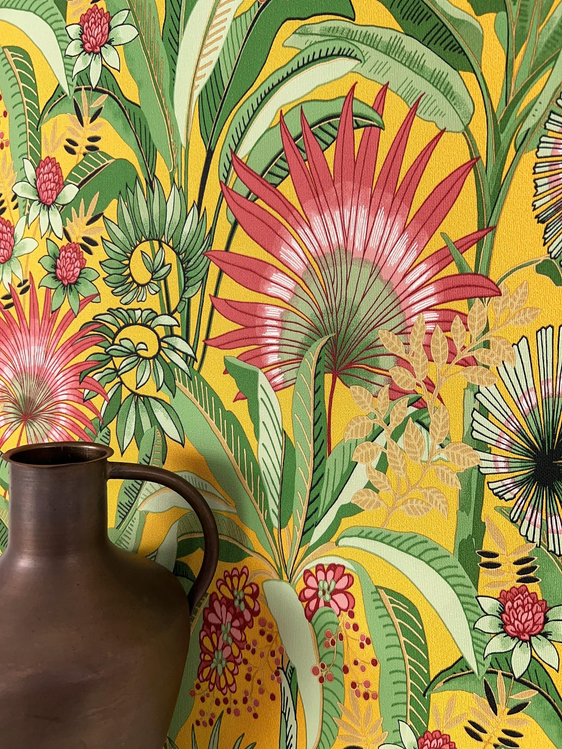 | Oberflächenstruktur | Gelb Tapete Modern Dschungel - Mustertapete Blumentapete Grün Rot Tropisch Floral Palmen Blätter für Wohnzimmer Schlafzimmer Küche |