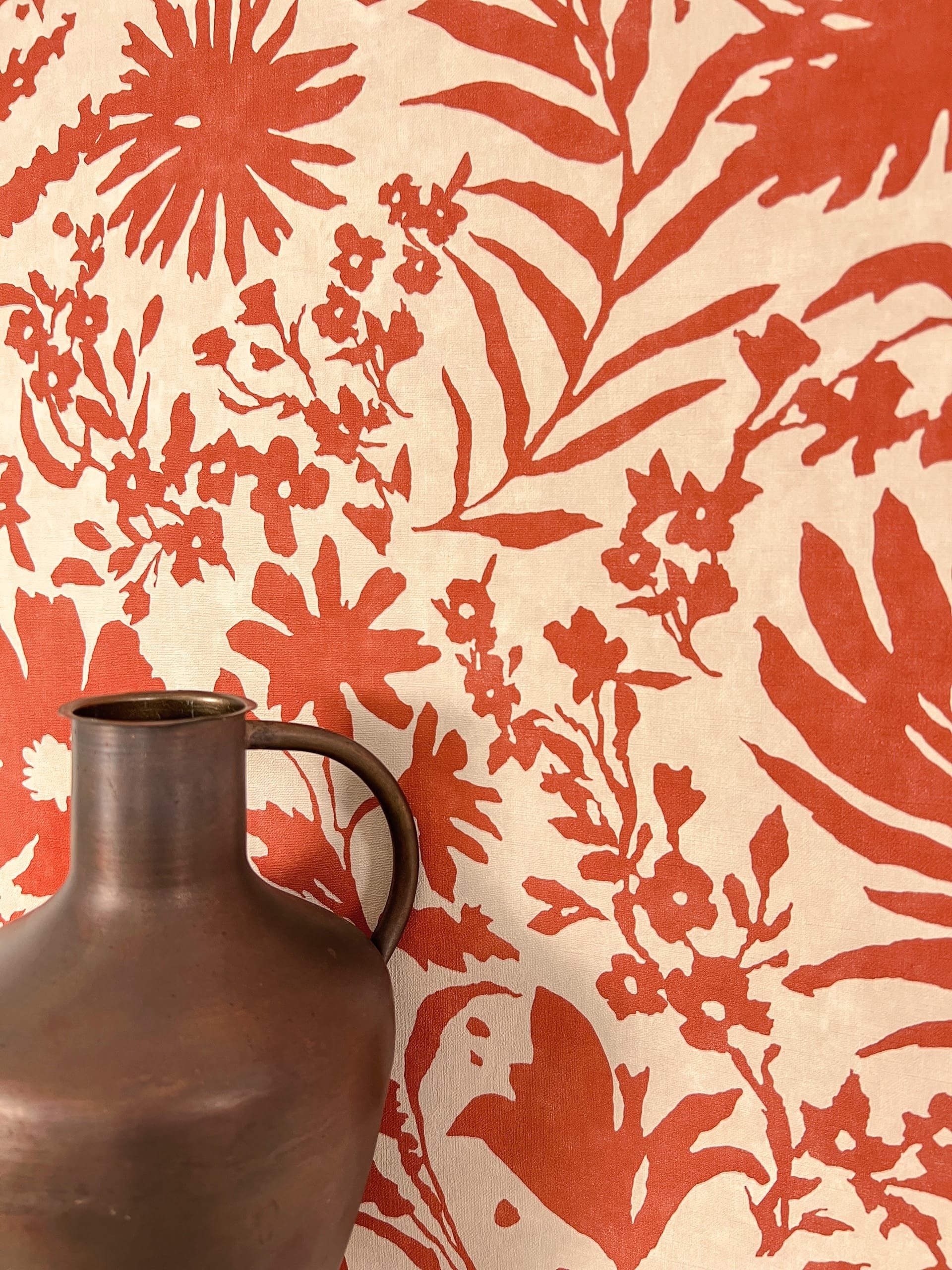 | Oberflächenstruktur | Rot Tapete Floral Blumen - Mustertapete Blumentapete Rostrot Beige Romantisch Modern Blüten Blätter für Wohnzimmer Schlafzimmer Küche |