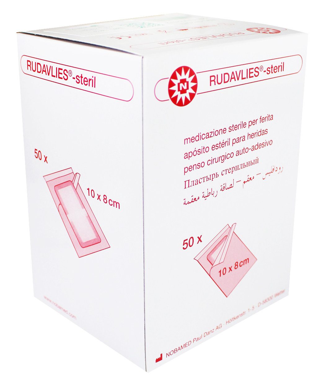 Das Trägermaterial des sterilen Wundschnellverbands besteht aus einem weißen, elastischen Vliesstoff und ist mit einem hypoallergenen Polyacrylatkleber beschichtet. Die Wundauflage verklebt nicht mit der Wunde und wird rundum durch das Trägermaterial geschützt. RUDAVLIES®-steril ist einzeln steril verpackt.