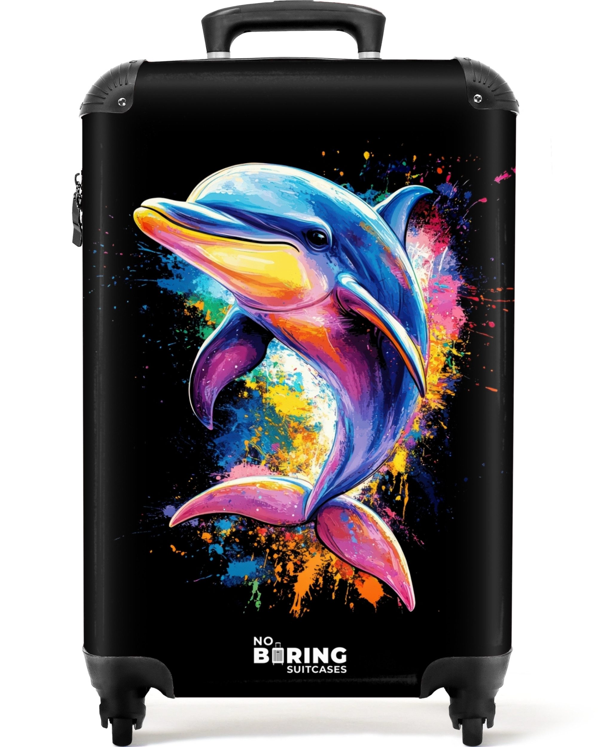 Ein Delphin mit buntem Graffiti auf schwarzem Hintergrund| Optik | bedruckt |