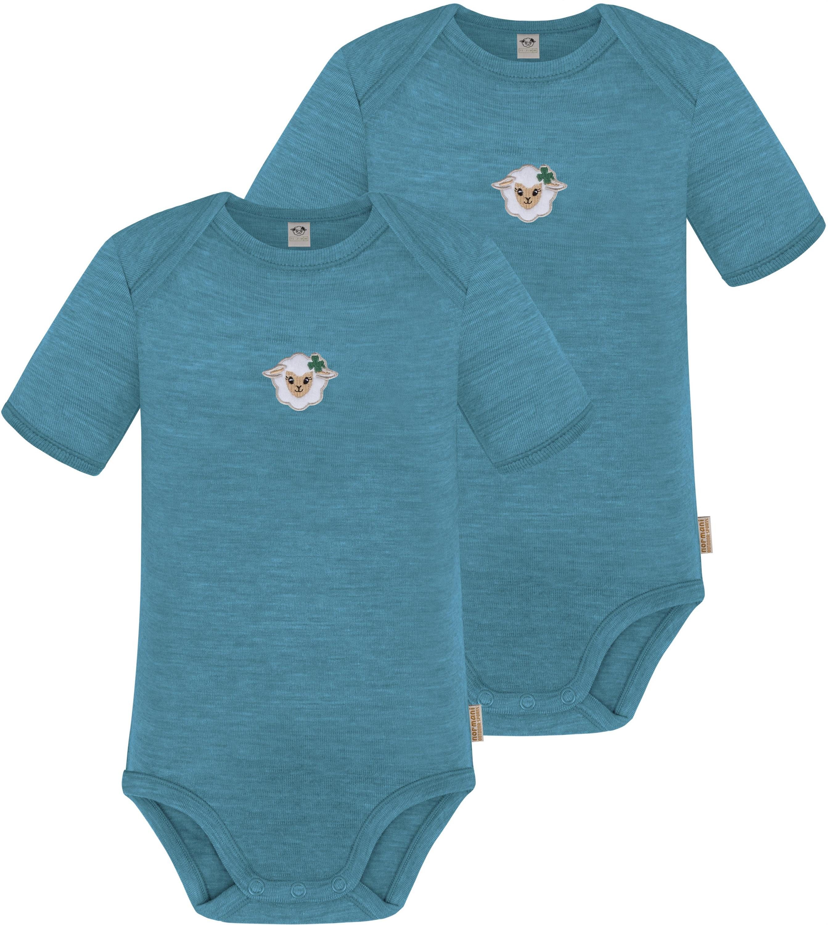 Unser Merino Kurzarm Body "Tauranga" im 2er Pack, ist mehr als nur ein einfacher Baby Body mit kurzen Ärmeln und amerikanischem Ausschnitt. Hinter seiner schlichten Erscheinung verbirgt sich ein Kleidungsstück, das sich perfekt für alle Wetterbedingungen eignet. Mit einer Grammatur von 200 g/m² bietet dieser Body eine optimale Wärmeisolierung, die ihn im Winter zur idealen wärmenden Schicht unter weiterer Kleidung macht. Auch im Sommer kann der Body wegen seiner natürlichen Thermoregulierung einzeln getragen werden. Die Wärmeregulierung und Atmungsaktivität der Merinowolle ermöglichen es Ihrem Baby, den Body den ganzen Tag über zu tragen – sei es beim Spielen oder beim Nickerchen. Die weiche Merinowolle ist besonders sanft zur empfindlichen Haut Ihres Babys und verursacht keine Hautirritationen. Zudem ist die Merinofaser geruchsneutralisierend, sodass der Body auch nach mehrmaligem Tragen frisch bleibt. Die Elastizität der Merinowolle und der amerikanische Ausschnitt sorgen für maximale Bewegungsfreiheit beim Spielen und Umziehen. Weiterhin ist der Body mit Marken-Druckknöpfen von YKK zwischen den Beinen ausgestattet. Diese ermöglichen ein zuverlässiges Öffnen und Schließen und erleichtern das Wickeln. Abgerundet wurde der Body mit einem kindgerechtem, flauschigem Schaf Stick, der als Eyecatcher dient.