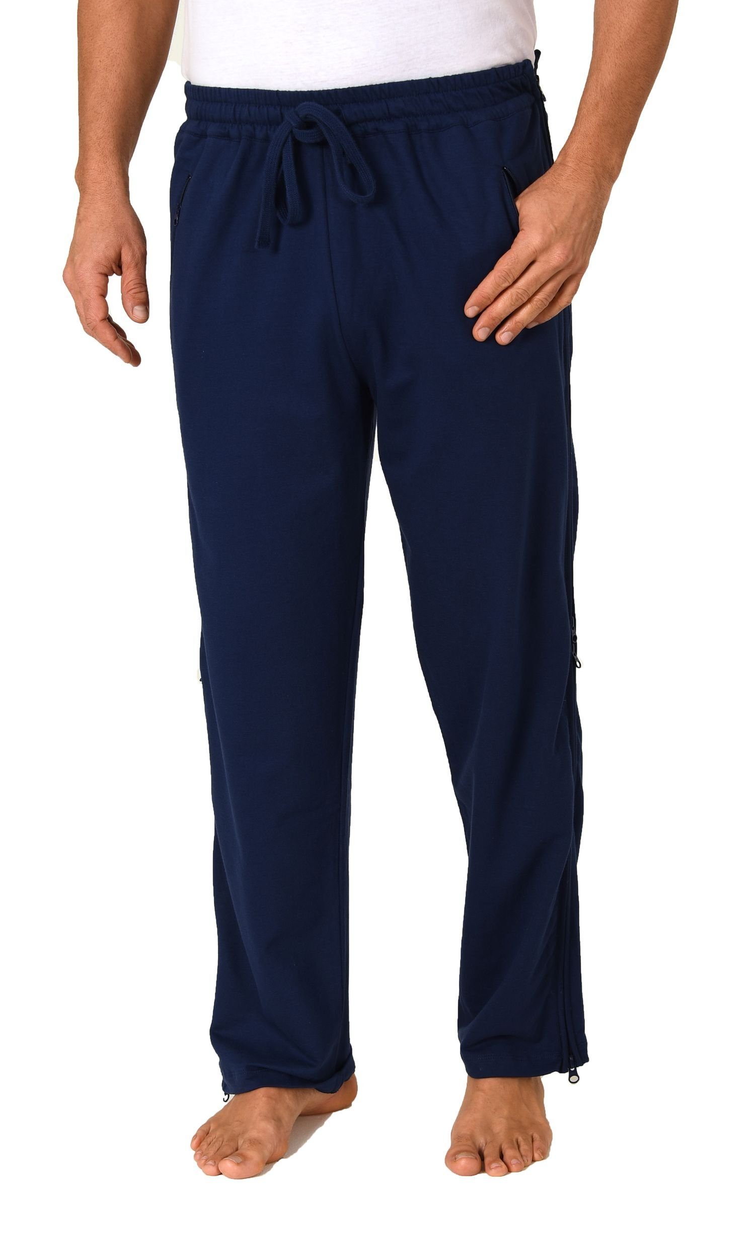 Herren Rehahose mit seitlichen 4-Wege Reißverschluß Jogginghose für Reha, Physio, Gipsbein