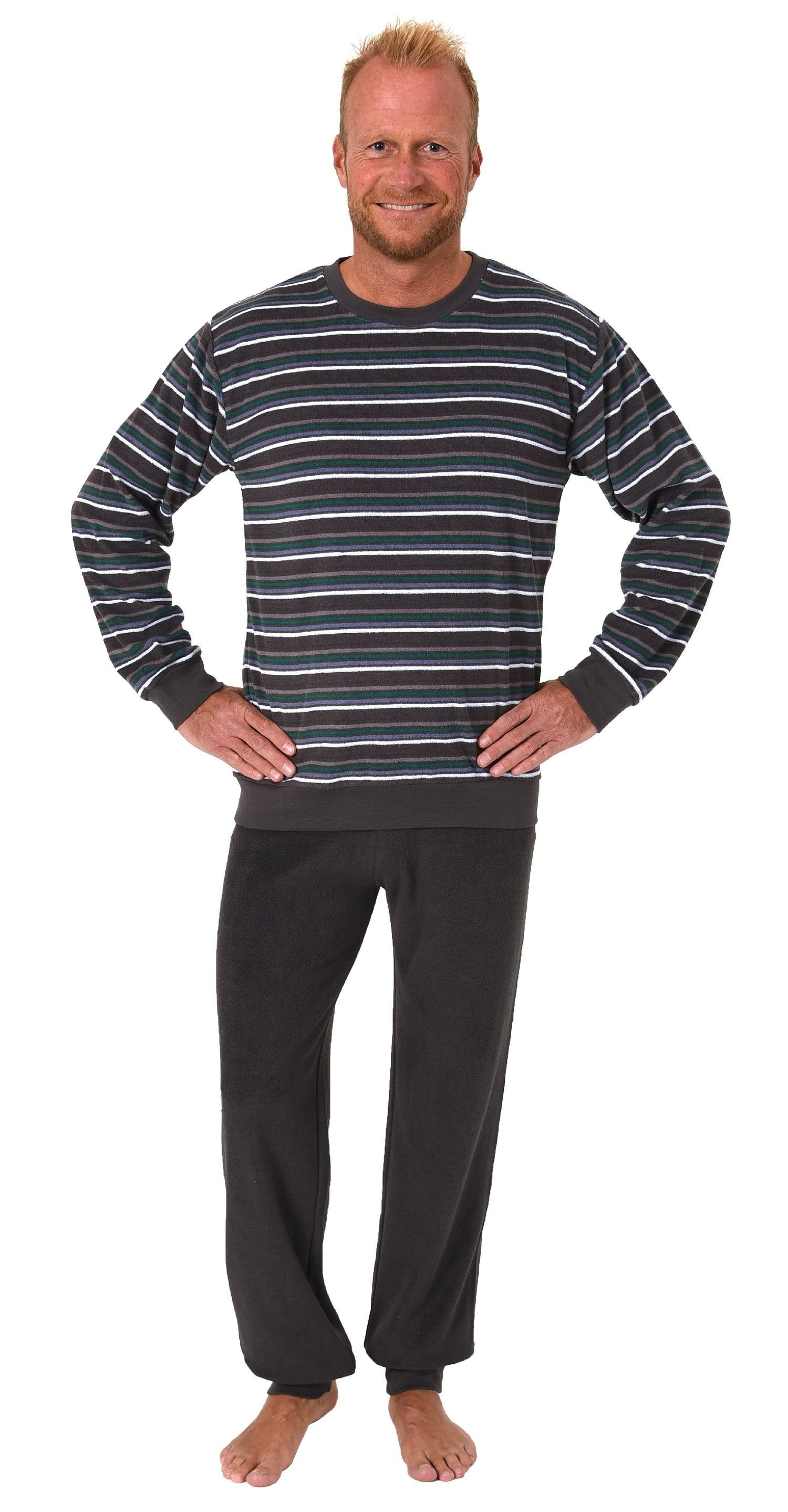 Herren Frottee Pyjama langarm Schlafanzug mit Bündchen in Streifenoptik - 281 101 13 648