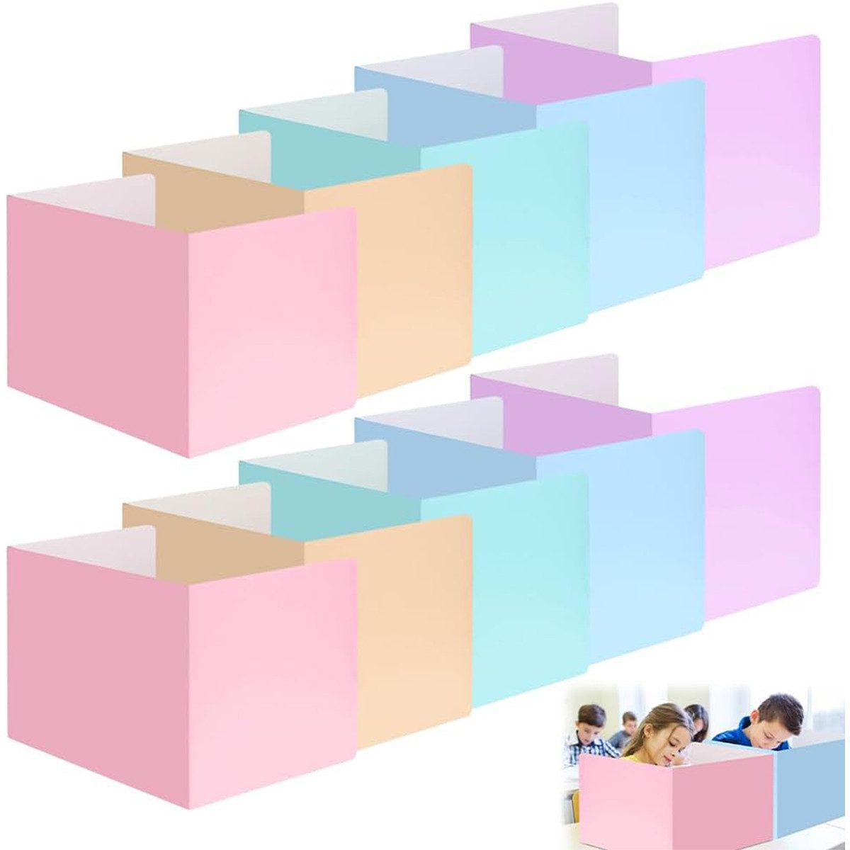 Sie erhalten 10 Stück schreibtischtrenner in 5 verschiedenen Farben, 2 Stück pro Farbe. Der U-förmige Schreibtisch-Trennwand ist ein vielseitiges und praktisches Zubehör, das sich für verschiedene Umgebungen wie Schulen, Büros und Bibliotheken eignet. Mit Maßen von 40x30x30 cm passt er nahtlos auf jeden Standard-Schreibtisch und bietet eine bequeme und effektive Lösung zur Schaffung eines persönlichen Arbeitsbereichs.