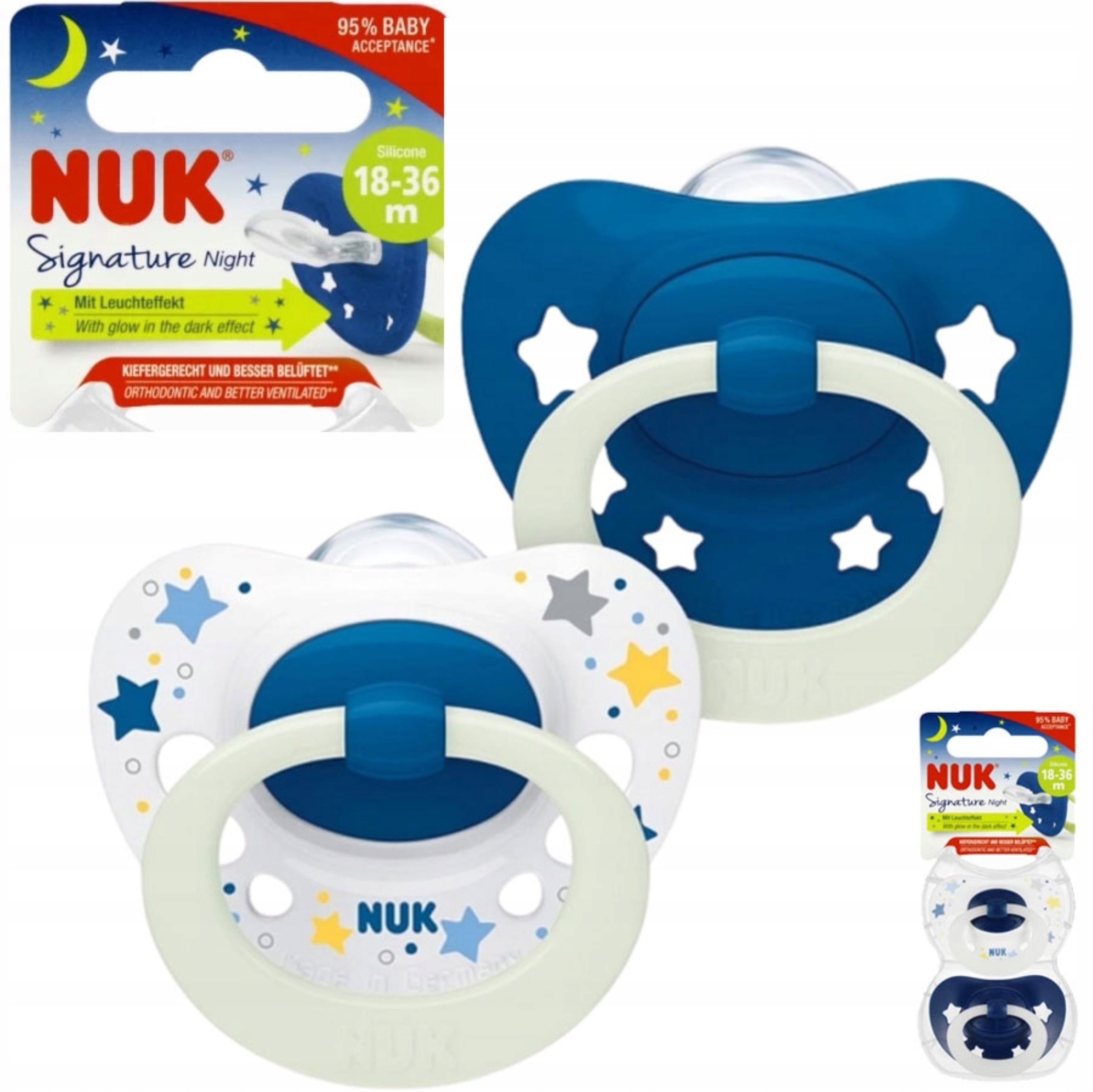 Die NUK Signature Night Schnuller 18–36 Monate im 2er-Set bieten Sicherheit, Komfort und gesunden Kieferaufbau. Mit ihrem anatomischen Design, BPA-freiem Silikon und einem praktischen Sterilisier-Etui sind sie die perfekte Wahl für Eltern. Dank leuchtendem Ring sind die Schnuller auch nachts leicht zu finden.