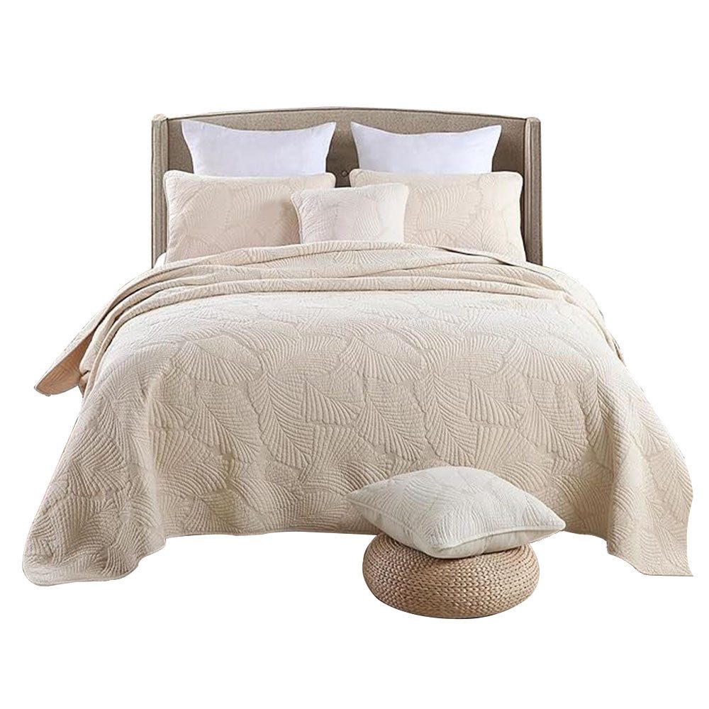 3-Teiliges Set1 Tagesdecke 230x250 Beige mit Palmblätter Muster für Doppelbett mit 2 passenden Kopfkissenbezügen 50x70 cm. Die Kissenbezüge haben gleiche Farbe und Muster.