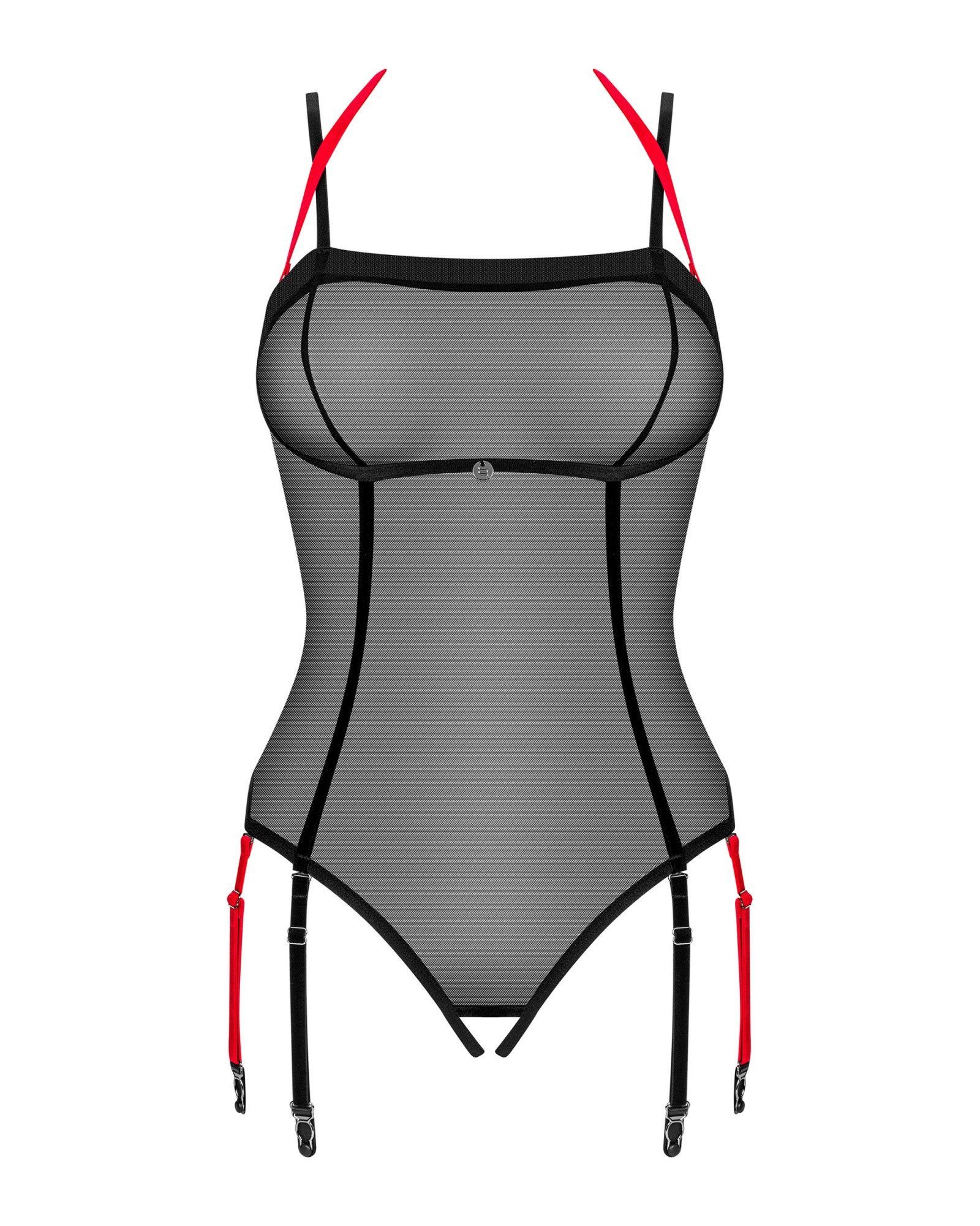 Der semitransparente Stringbody Glandez von Obsessive lässt die Brust schnell freimachen mit dem abnehmbaren Neckholder. Auch die Strapsen sind abnehmbar und machen den Body vielseitig kombinierbar. Der Schritt ist einladend ouvert für sexuelle Erkundungen.
