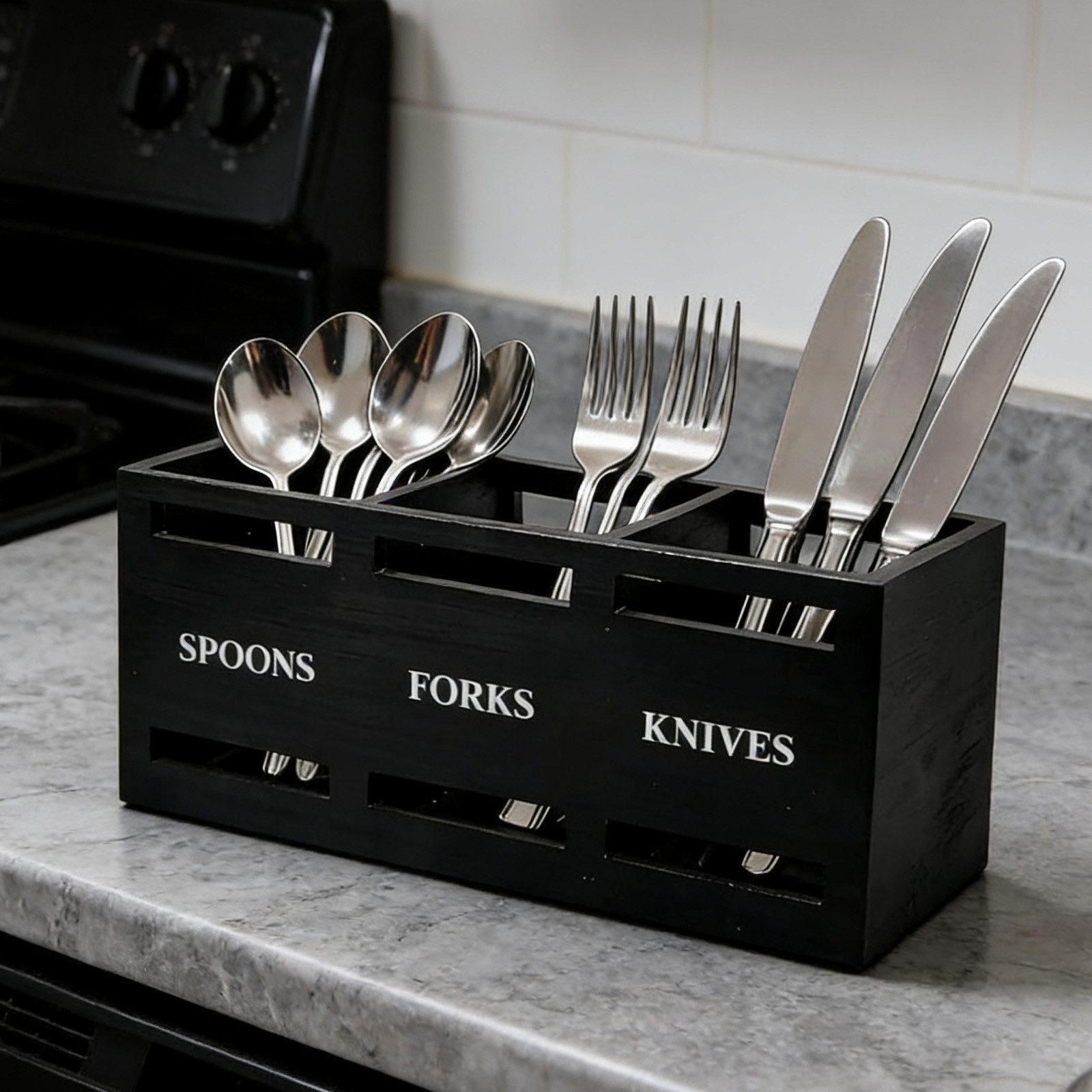 Offenes Design für schnellen Zugriff auf Messer, Löffel, Gabeln und Küchenzubehör