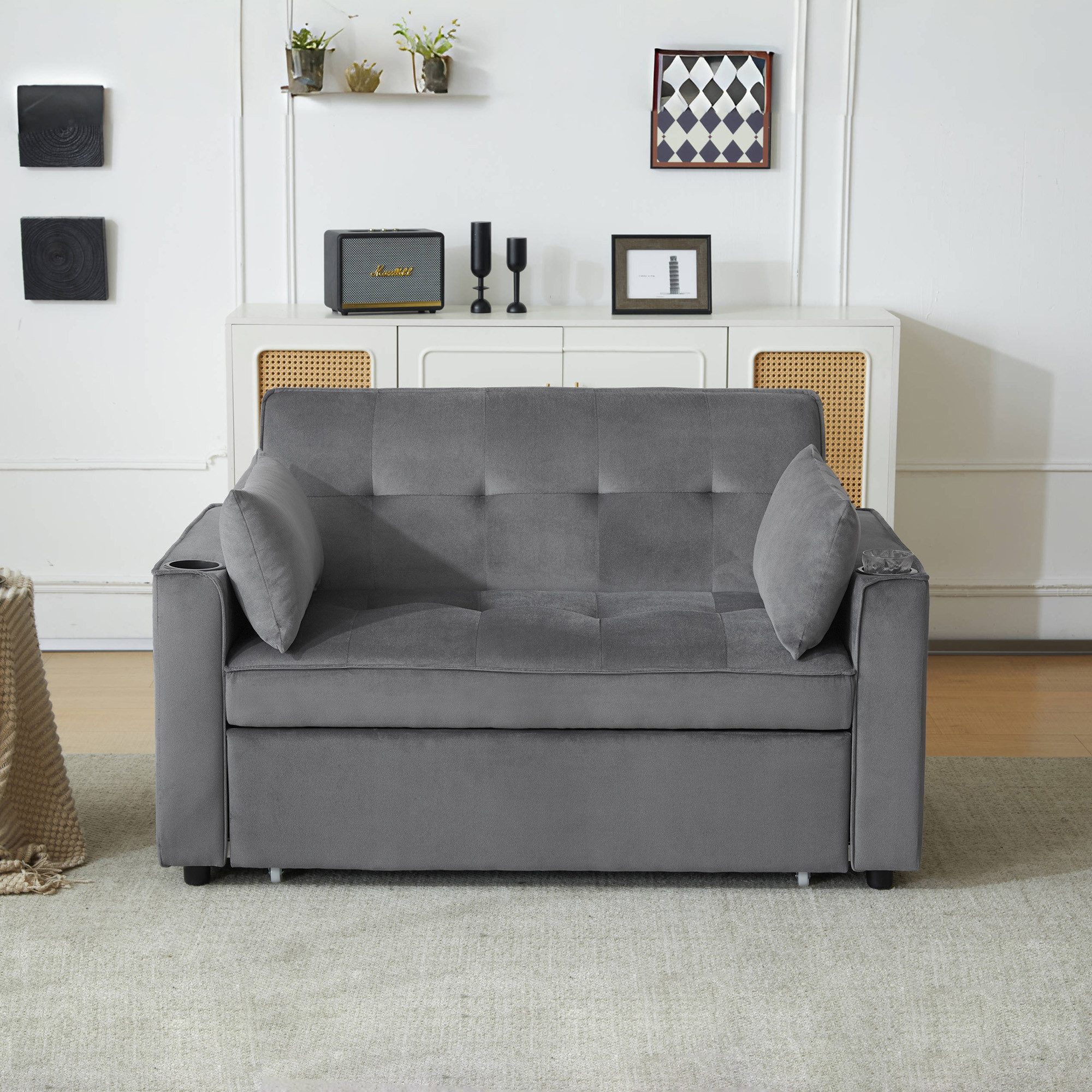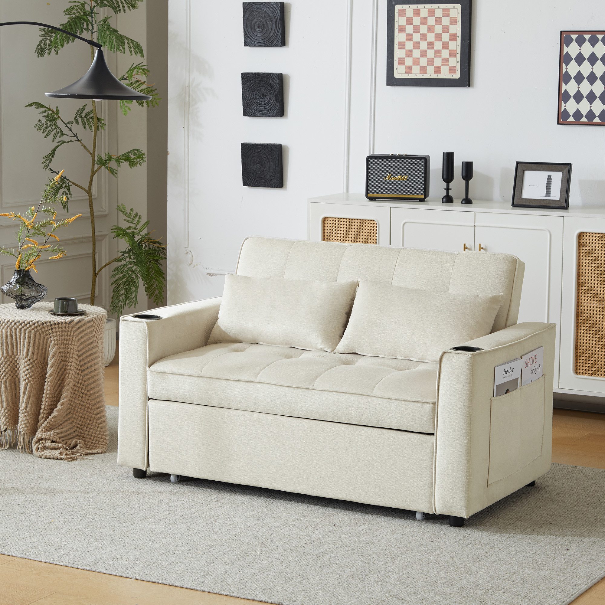 Zur Ausstattung des Schlafsofas gehören zwei großzügige Kissen, die für zusätzlichen Komfort sorgen und Ihnen eine entspannte Ruhepause ermöglichen. Die Kissen bieten die perfekte Unterstützung für Ihren Rücken und Nacken, egal ob Sie sitzen, lesen oder schlafen möchten. An den Seiten der Armlehnen befinden sich praktische Getränkehalter, in denen Sie bequem Wasserbecher oder andere Getränke abstellen können. Zusätzlich verfügen beide Seiten des Sofas über Zeitschriftentaschen, die sich ideal zur Aufbewahrung von Zeitschriften, Büchern oder Fernbedienungen eignen.