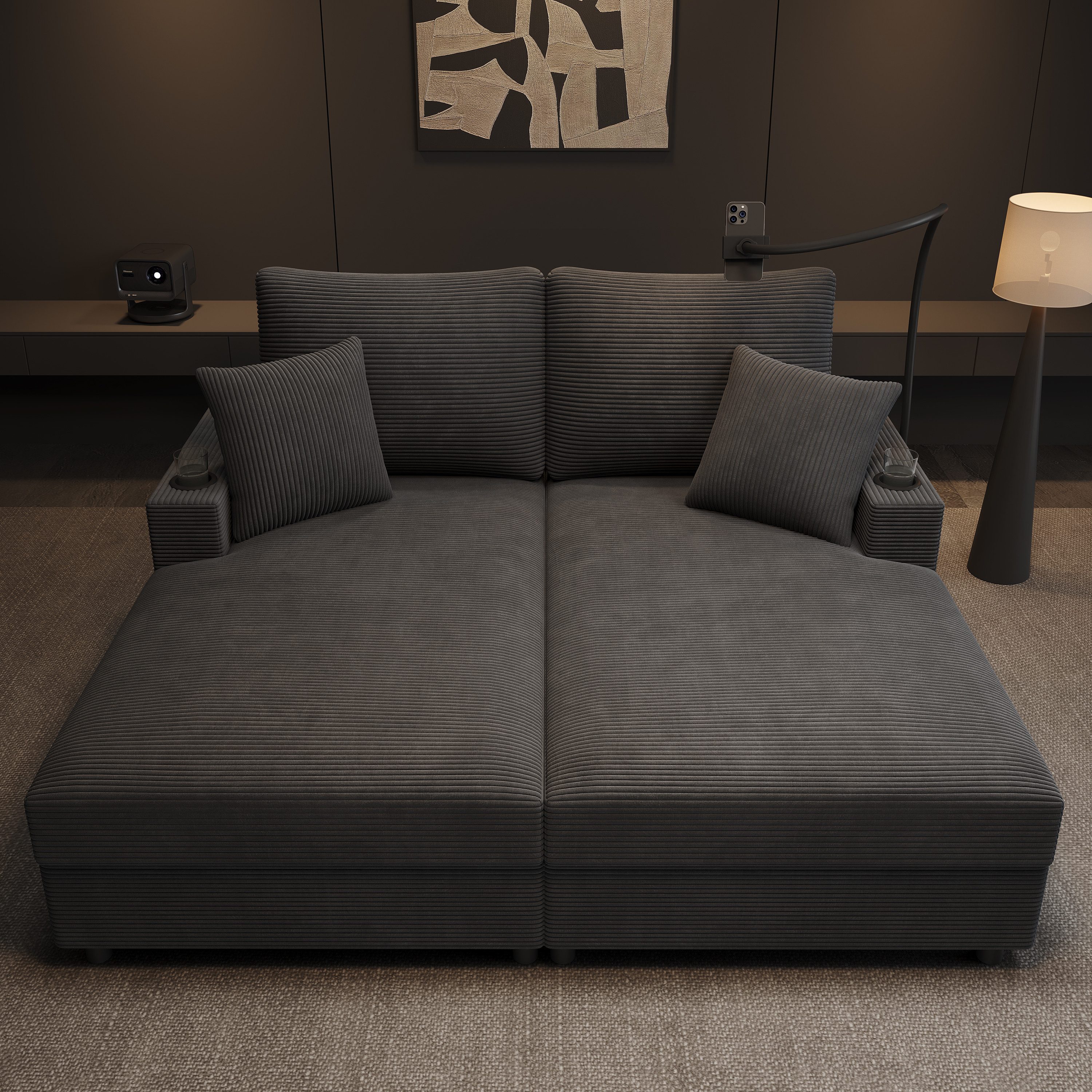 Das warme Beige und der feine Cordbezug verleihen dem Möbelstück eine behagliche Ausstrahlung, die sich harmonisch in moderne Wohnzimmer, Gästezimmer oder Home-Cinema-Bereiche einfügt.
