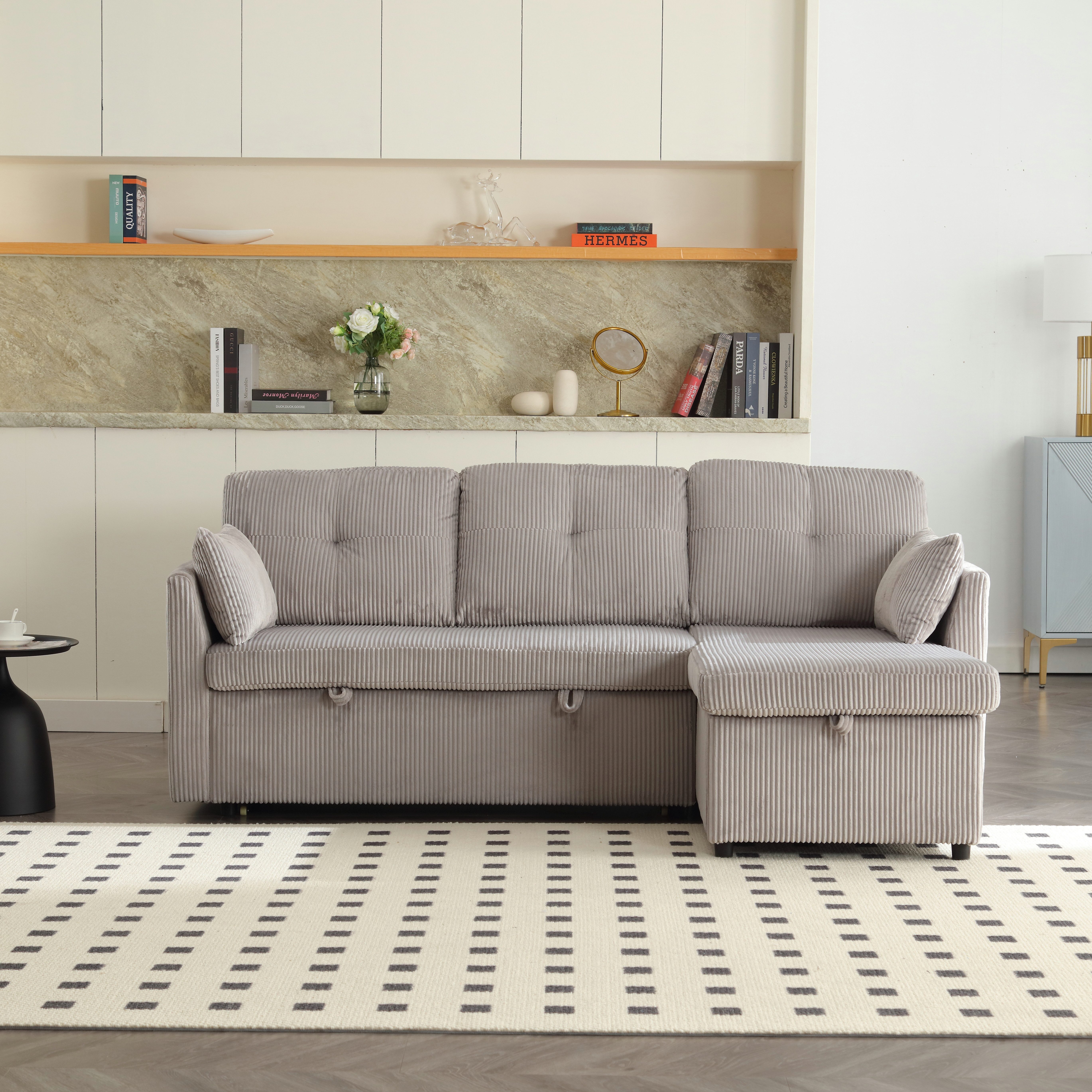 Praktischer Stauraum: Jedes Sitzmodul verfügt über einen integrierten Stauraum unter der Sitzfläche. Dies bietet zusätzlichen Platz für die Aufbewahrung von Decken, Fernbedienungen oder Kinderspielzeug und sorgt dafür, dass Ihr Raum stets ordentlich und aufgeräumt bleibt.