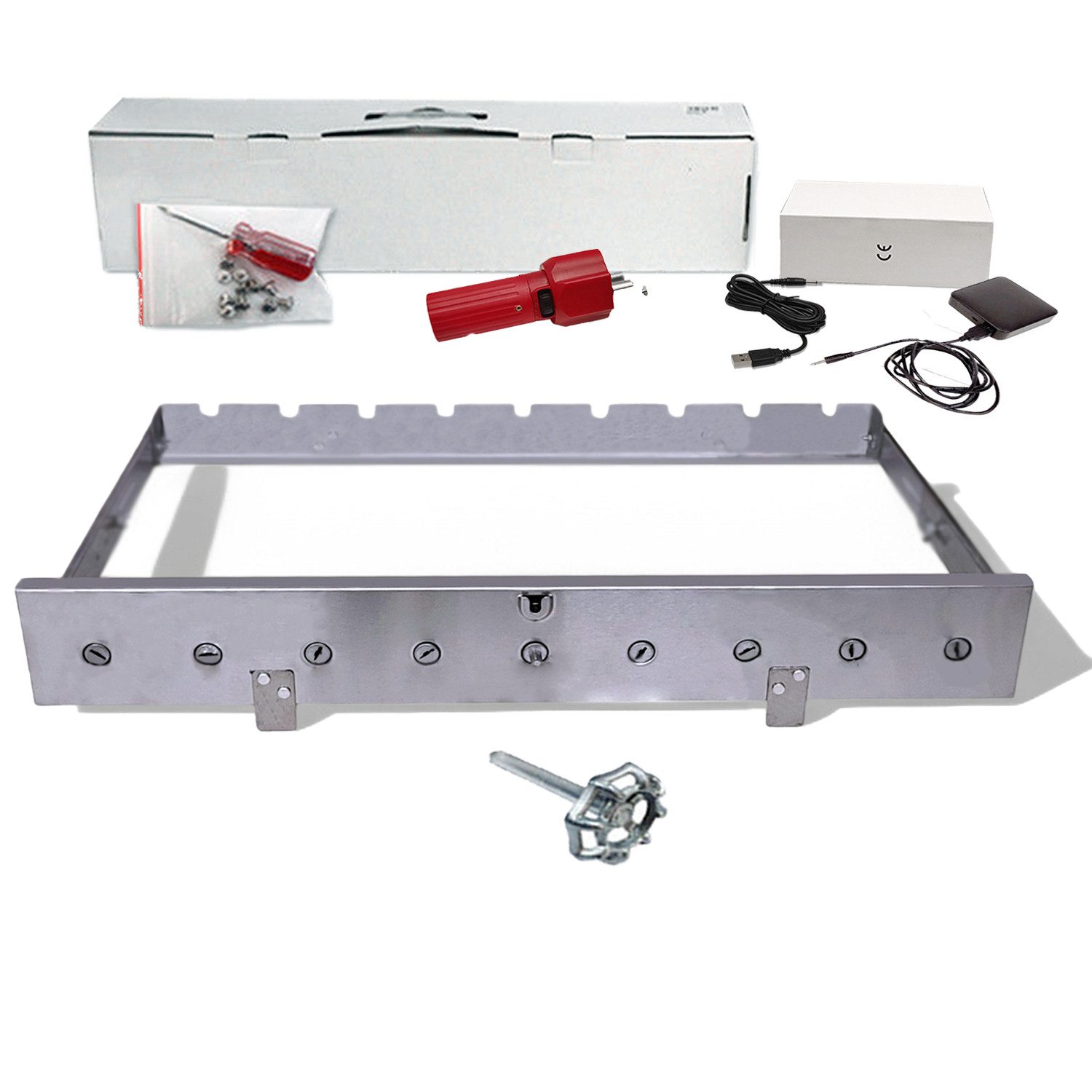 Edelstahl Spießdreher Sesam für 9 Spieße Schaschlik Mangal Motor + Akku mit USB