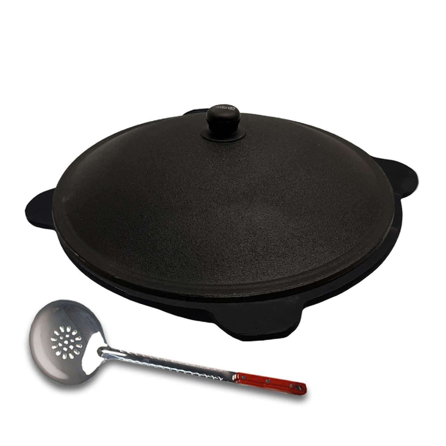 Kasan Gusseisen 16L Uzbekischer Kazan mit Aludeckel und Schaumlöffel