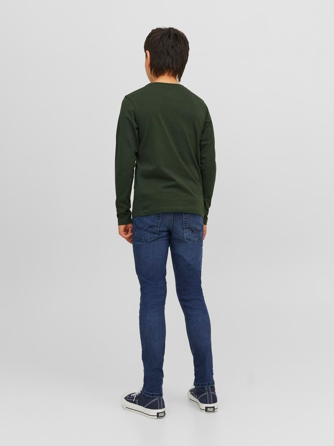 Original ist eine klassische Five-Pocket-Jeans: zeitlos, unkompliziert und so, wie man sie seit den Anfängen kennt - das macht sie zu etwas auf das man sich verlassen kann, wie es eine gute Jeans sein sollte. Jack & Jones Super Stretch 50% Jeans sind extrem flexibel und bieten den Komfort, den Du in Deinem aktiven Leben brauchst. Der Fasermix macht den Denim bis zu 50% dehnbar und behält dabei seine Form. Mit dieser Super Stretch 50% Jeans erlebst Du unglaublichen Komfort in einer echten Jeans. - Produkttyp : Slim Fit Jeans - Verschluss : Knopfleiste - Taille : Niedrige Taille - Waschen : Stonewashed für einen Used-Look mit Faded-Effekten - Körperform : Junior - Passform : Slim Fit mit tief sitzendem Bund, schmalen Knien und schmalen Beinöffnungen