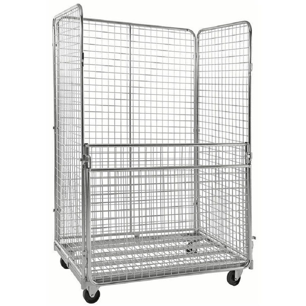 Gitterrollwagen mit 4 Seitenteilen, 50 x 50 mm Maschenweite, einer klappbaren Wand sowie einer Vielzahl von Anwendungsmöglichkeiten. Einfache Montage ohne Werkzeug.