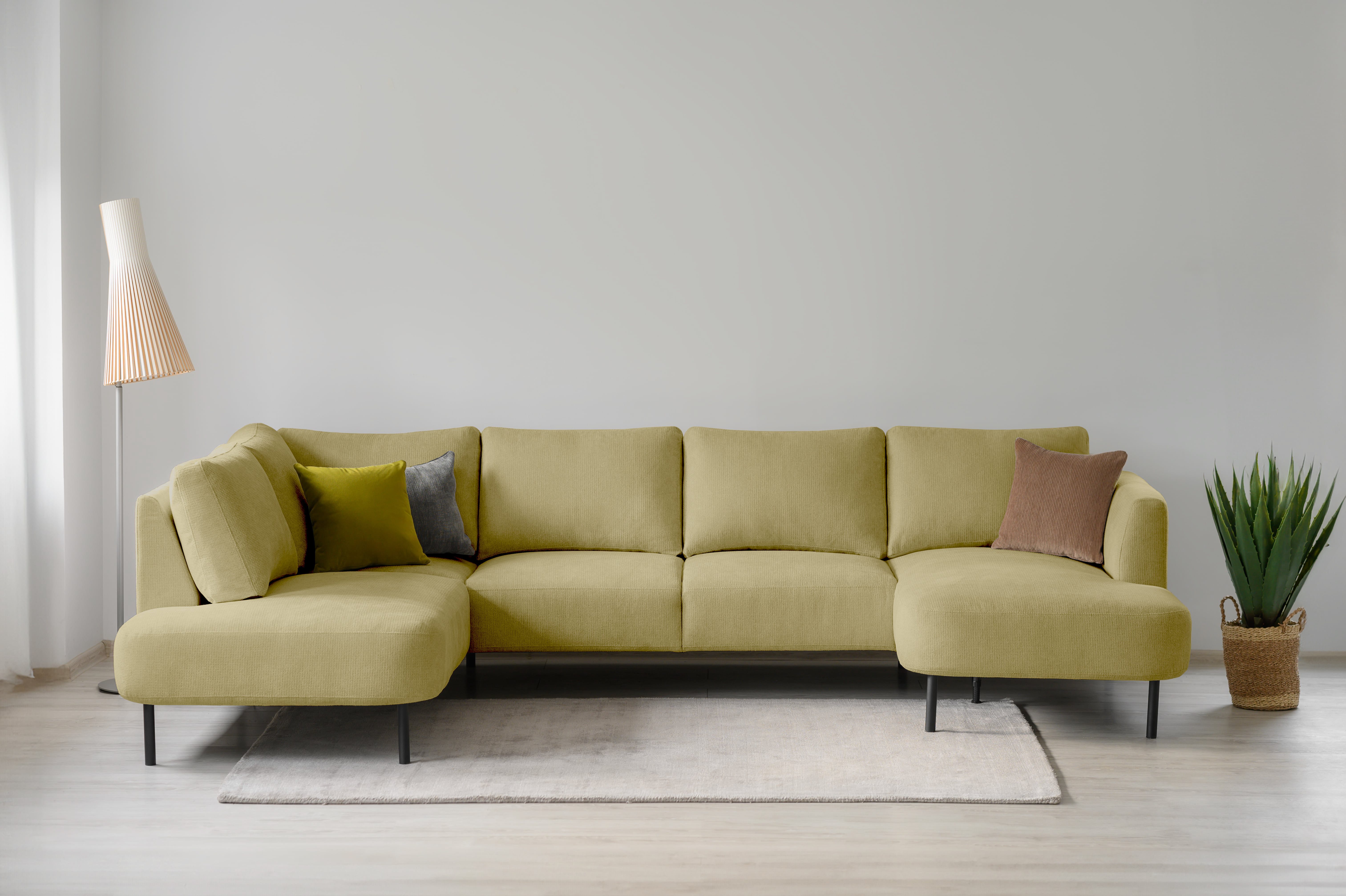 Diese Wohnlandschaft »Cesola« von Places of Style bietet dir dank der Wellenunterfederung hohen Sitzkomfort und Tragfähigkeit. Von vorne betrachtet ist die Ottomane nach links ausgerichtet. Die maximale Belastbarkeit liegt bei einem Gewicht von 450 Kilogramm. Die samtig wirkende Oberfläche zeichnet den Bezug aus Chenille, einem Webstoff aus dem sogenannten Chenillegarn, aus.