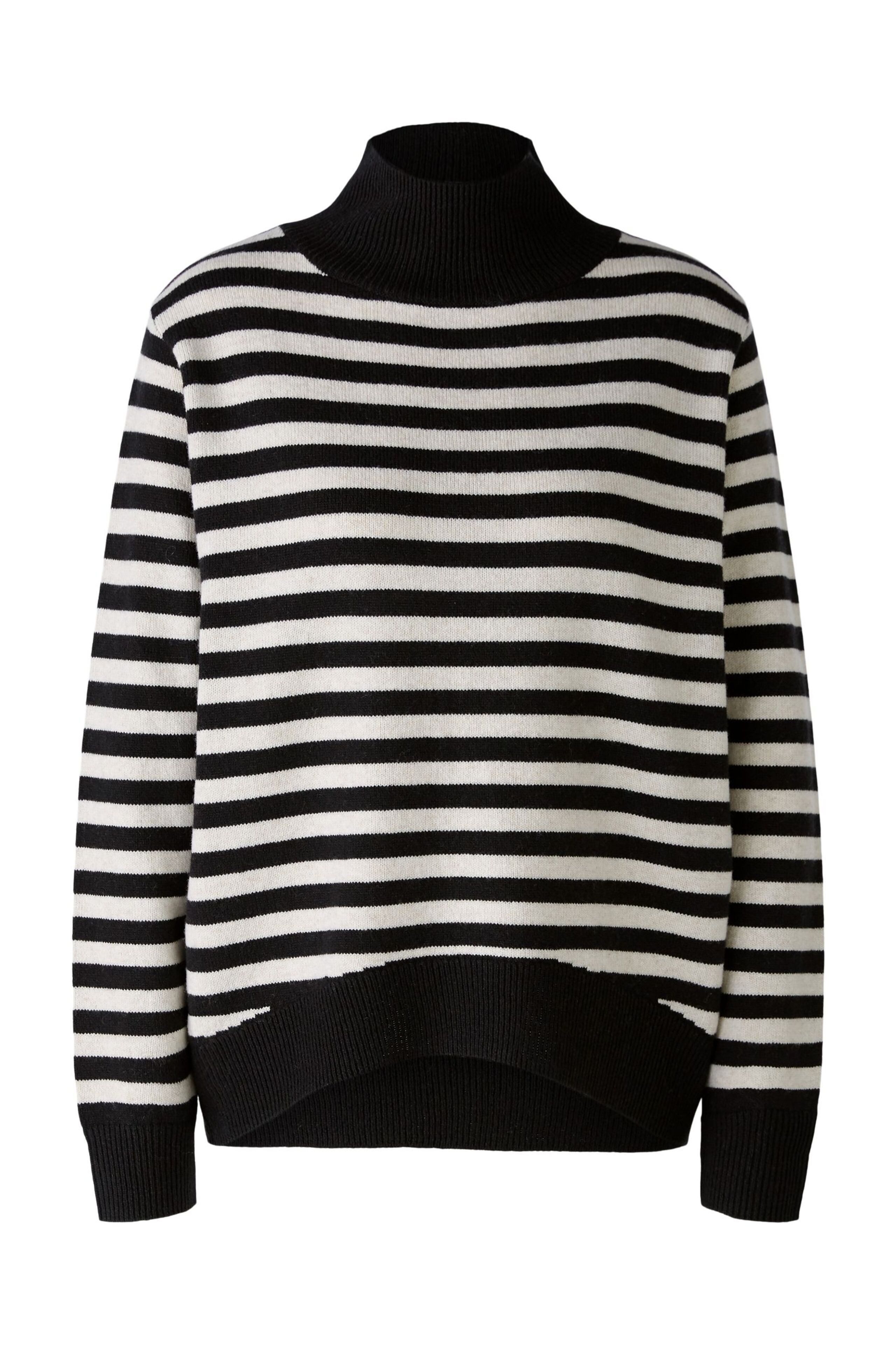 Dieser lässige Pullover überzeugt mit einem besonderen Schnitt und stilvollen Details: Die eigens eingesetzten Ärmel sorgen für eine moderne Passform, während der hohe Stehkragen flexibel getragen werden kann – klassisch hochgestellt oder lässig umgeschlagen. Die weiche Garnmischung mit Wolle und Modal fühlt sich angenehm auf der Haut an und sorgt für wärmenden Tragekomfort. Farblich abgesetzte Strickbündchen und eine gerundete Saumlinie vorn runden das Design perfekt ab.