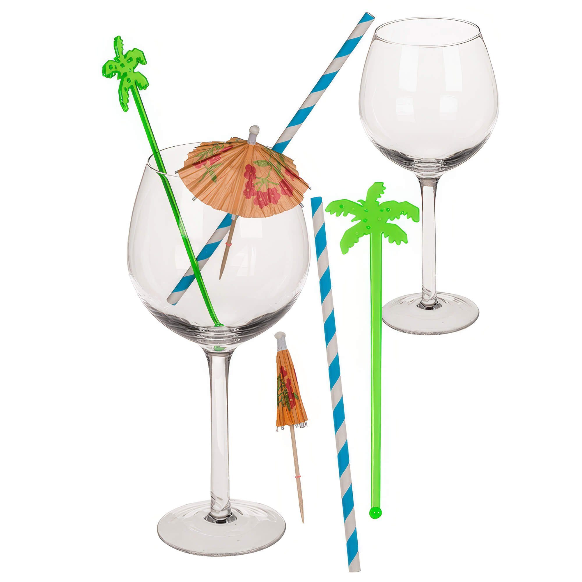 Mit diesem 10 teiligen Grund-Set haben Sie alles, was Sie für einen Cocktail für zwei Personen benötigen. Dabei sind zwei Gläser und dazu passend je zwei Papierschirmchen, Trinkhalme, Untersetzer, Rührstäbchen.
