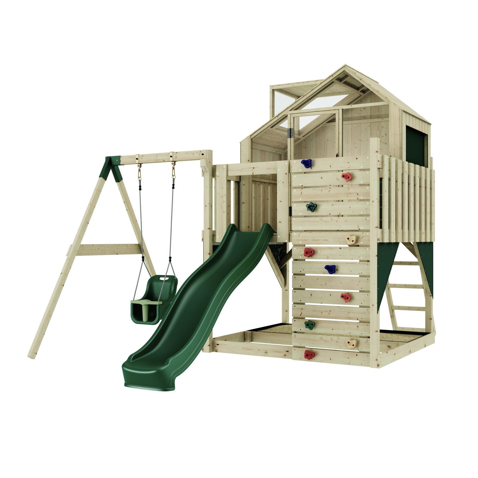 Der Name Madita bedeutet 'die Perle' - und genau das könnte man auch zu unserem gleichnamigen Spielturm sagen! Über die Kletterwand gelangen die Kleinen auf die Plattform mit Spielhaus, von der sie eine tolle Aussicht haben. Mit ganz viel Schwung geht es über die Rutsche dann wieder nach unten.