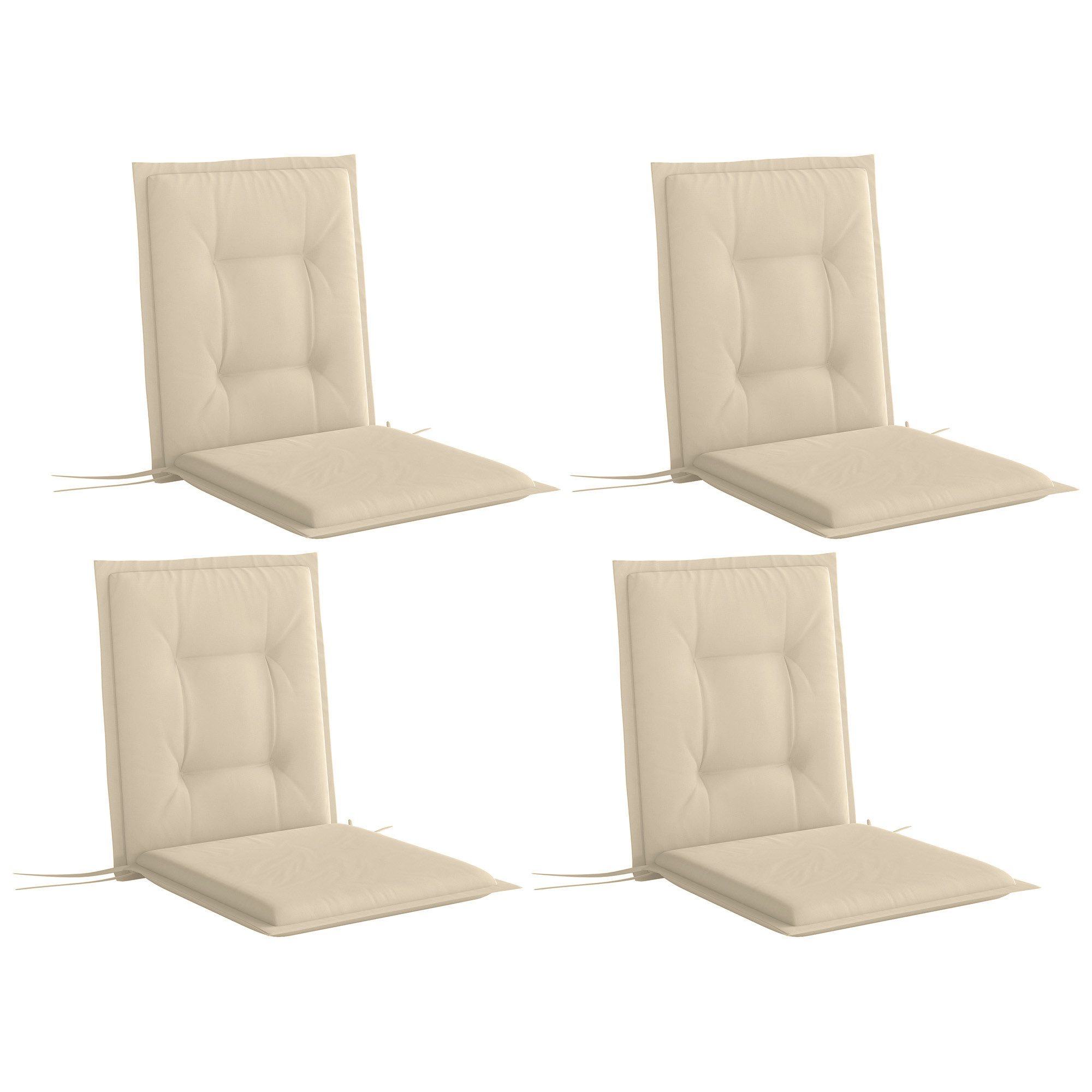 Verbessern Sie Ihre Outdoor-Sitzgelegenheiten mit Outsunny Stuhlauflagen inklusive Rückenlehnen. Der Polyesterbezug jedes Stuhlkissens ist hautfreundlich, UV-beständig und einfach zu reinigen. Sie sind mit hochelastischem Schaumstoff gefüllt, der für höchsten Komfort sorgt, und verfügen über Bänder zur sicheren Befestigung an Ihren Stühlen. Die getufteten Rücken halten die Füllung an Ort und Stelle. Mit diesen Sitzkissen steigern Sie sowohl Komfort als auch Stil.