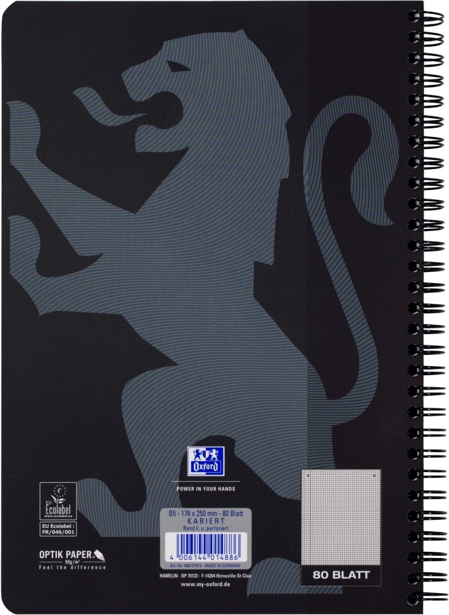 OXFORD Notizblock Collegeblock Touch B5 80 Blatt 90g/qm kariert schwarz Packung mit 5 St