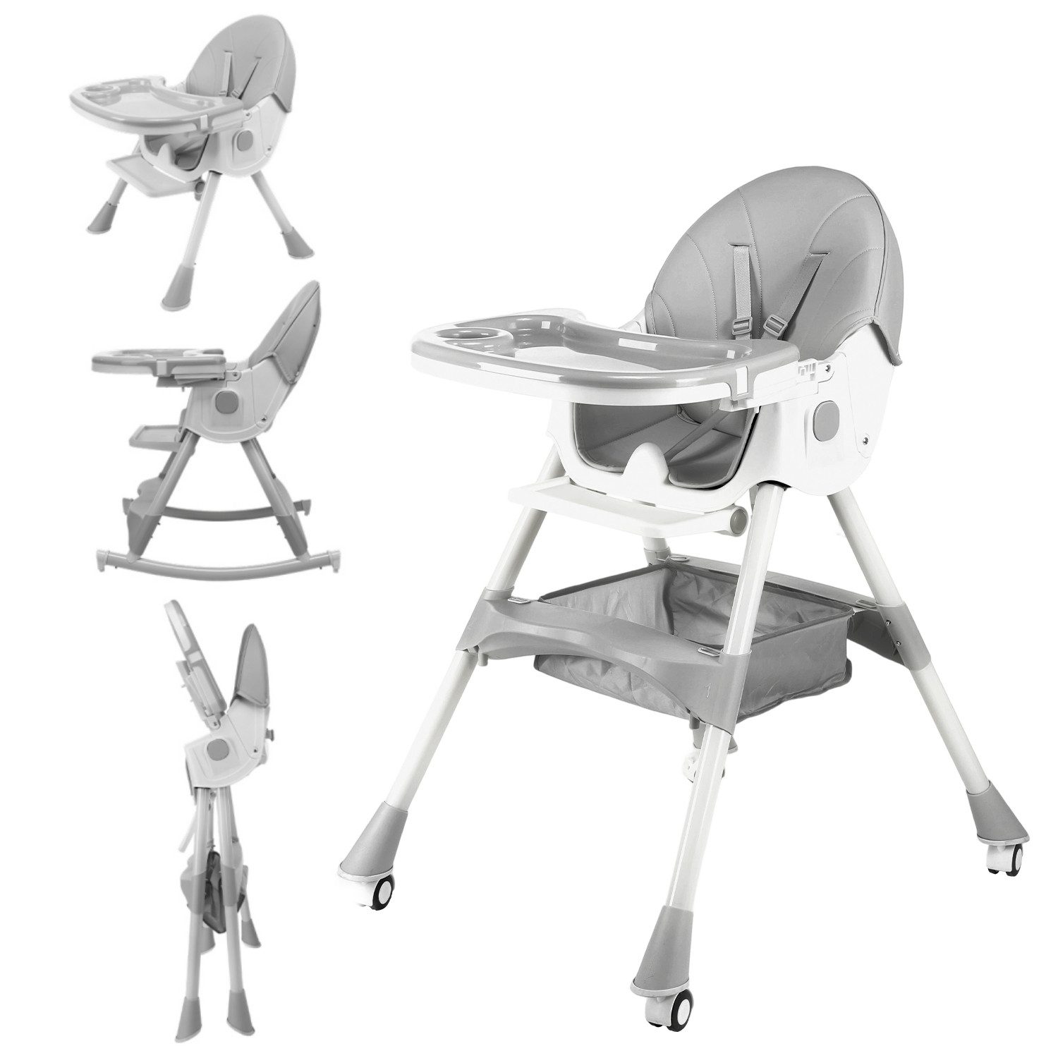 Fünf Konvertierungsmodi hochstühleNiedrig baby essen stuhl, hoher kinder essen stuhl, Schaukelpferd kinderstühle, Rückenlehne in 4 Positionen, Rollschiebestuhl