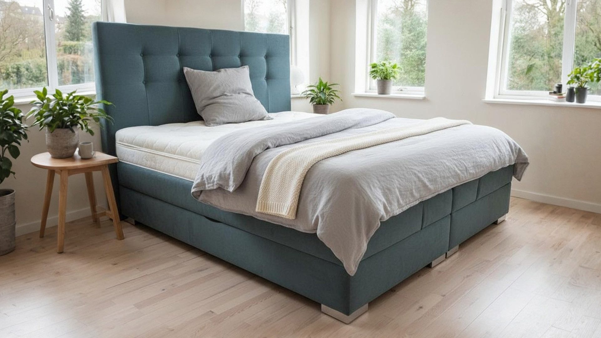 Hochwertiges Boxspringbett mit Bettkasten und seitlichem Zugang.