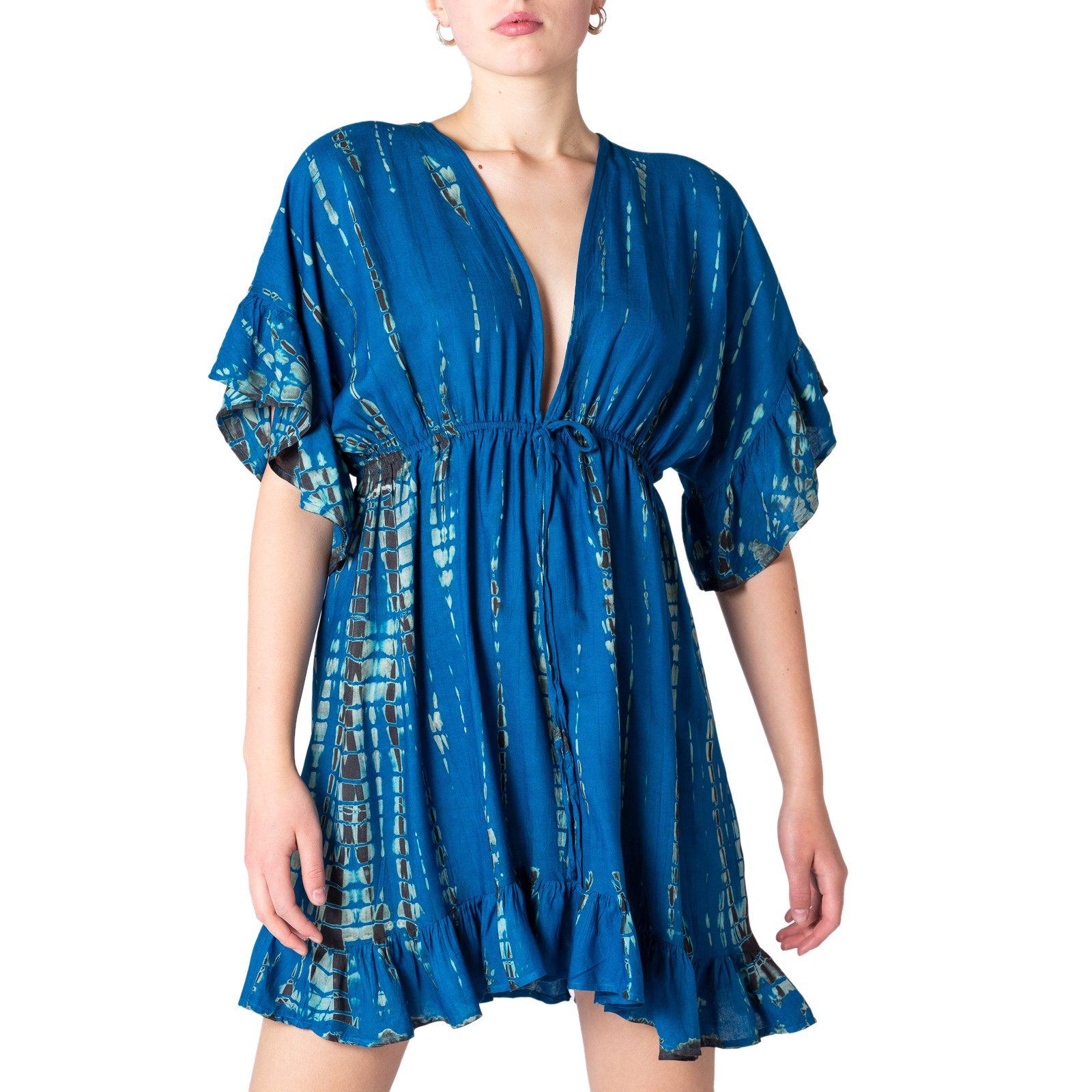 Unser kurzes Sommerkleid aus weicher Viskose schmeichelt Deiner Figur mit einem tiefen V-Ausschnitt, einer luftig lockeren Passform, verspielten Rüschen und einem Kordelzug und bietet an heißen Tagen ein angenehmes Tragegefühl. Kombiniere das Freizeitkleid mit unseren Taschen und Accessoires für einen bezaubernden Look. Perfekt für Strandpartys, Festivals, den Alltag oder romantische Dates – dieses vielseitige Kleid ist ein echtes Must-Have für den Sommer!