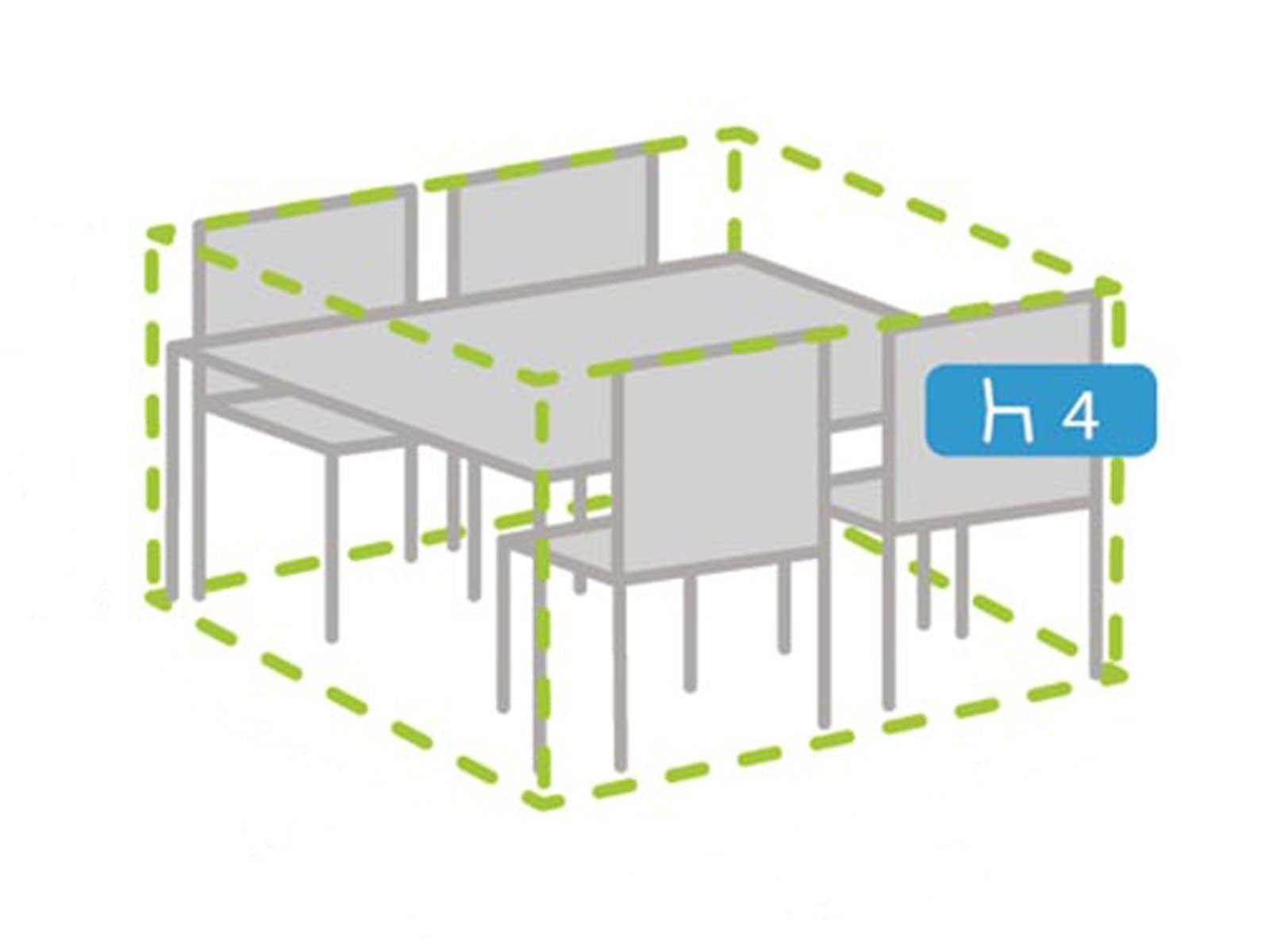 Mit einem Maß von 165 x 135 x 95 cm (LxBxH) eignet sich diese Abdeckung optimal für einen Gartentisch mit 4 Stühlen.