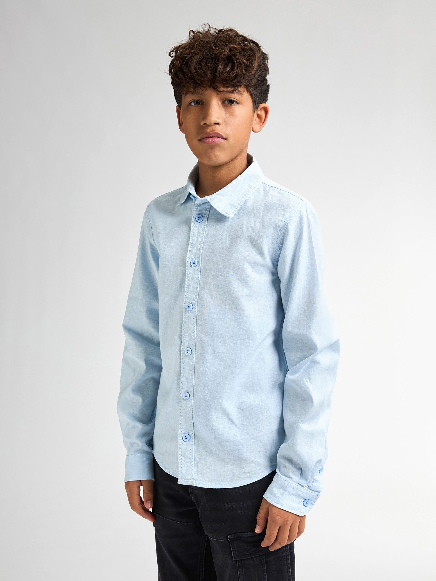 Unifarbenes Hemd mit klassischem Kragen und Knopfleiste. Dieses schmal geschnittene Hemd ist aus einer hochwertigen Leinen-Baumwoll-Mischung gefertigt, durch die es bequem und atmungsaktiv ist. Die Knöpfe an den Ärmeln verleihen dem Hemd einen gepflegten Look. In einer Vielzahl von Farben erhältlich. Du kannst dich nicht zwischen zwei Größen entscheiden? Wähle dann stets die größere Größe.