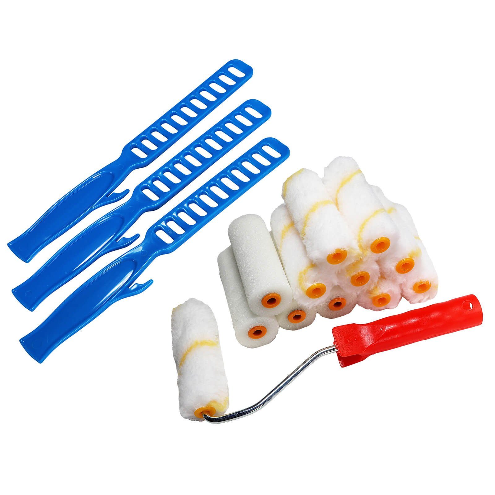 16 teiliges Anstreichset geeignet für Lackfarben, Latexfarben, Wand- und Deckenfarben. Einsetzbar für strukturierte und glatte Flächen. Im Set enthalten sind 4 Schaumwalzen, sowie 8 Plüschwalzen 100mm und ein Steckbügel, sowie 3 Farbrührstäbe zum optimalen Durchmischen Ihrer Farben und Lacke.