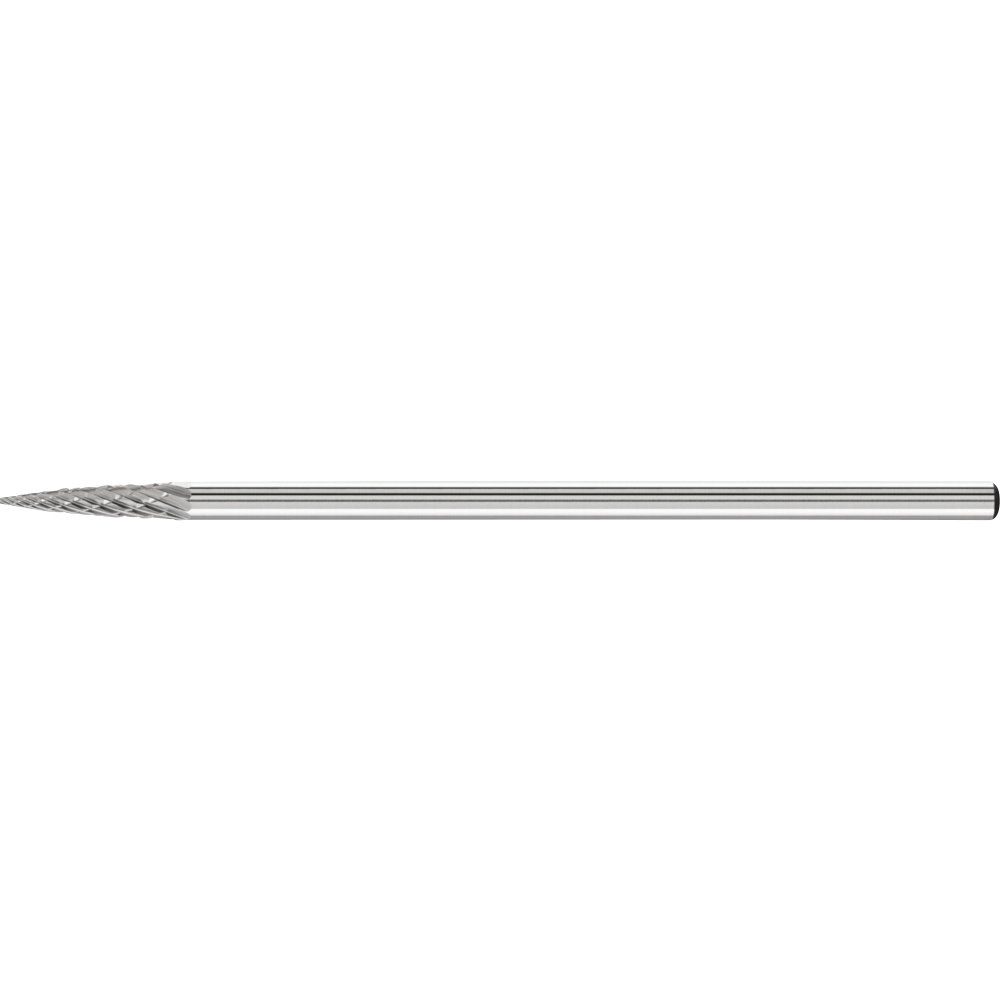 Spitzbogenförmiger Frässtift nach DIN 8032 mit Verzahnung nach DIN 8033, Spitze abgeflacht.