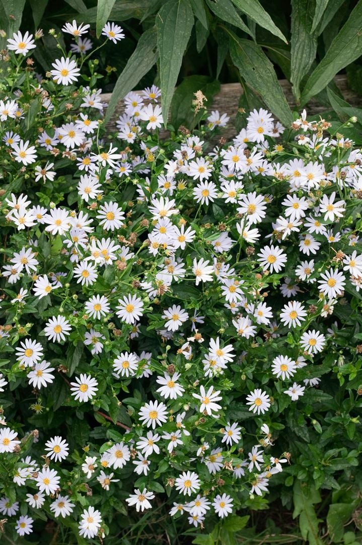 Kalimeris incisa Blue Star hat zarte hellblaue Sternblueten und blueht von Juni bis Oktober und ist reichbluehend