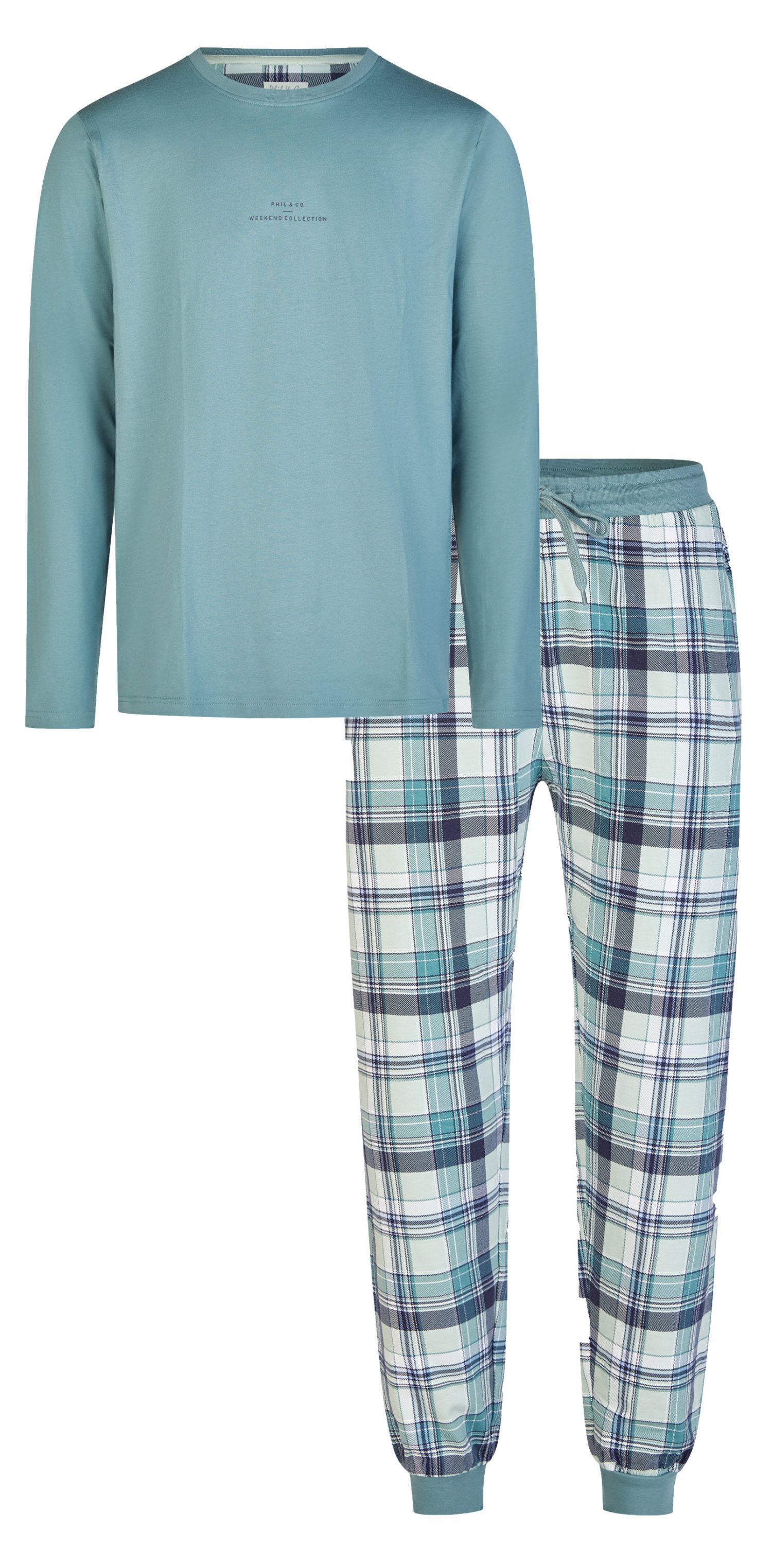 Dieser Phil & Co. Herren-Schlafanzug im klassischen Design perfekt für die Nacht und auch für entspannte Stunden zu Hause ideal geeignet ist. Die Schlafhose besteht aus 95 % Baumwolle und 5 % Elastan, wodurch sie eine besonders angenehme, weiche Haptik erhält und gleichzeitig elastisch und formbeständig bleibt. Die Baumwolle sorgt für ein natürliches, atmungsaktives Tragegefühl, während der Elastananteil leichte Dehnbarkeit verleiht. Der elastische Gummizug am Bund bietet einen bequemen und sicheren Sitz. Ergänzt wird dies durch einen Tunnelzug, mit dem sich die Bundweite individuell anpassen lässt. Das Shirt aus 100 % Baumwolle rundet den Schlafanzug harmonisch ab. Es fühlt sich angenehm weich auf der Haut an, ist besonders atmungsaktiv und unterstützt ein ausgeglichenes Körperklima während der Nacht. Der klassische Rundhalsausschnitt sorgt für ein unkompliziertes, zeitloses Design und trägt zu einem besonders angenehmen Tragegefühl bei. Insgesamt bietet dieser Schlafanzug eine hervorragende Kombination aus Bequemlichkeit, Bewegungsfreiheit und natürlichem Tragekomfort – ideal für erholsame Nächte und entspannte Momente.