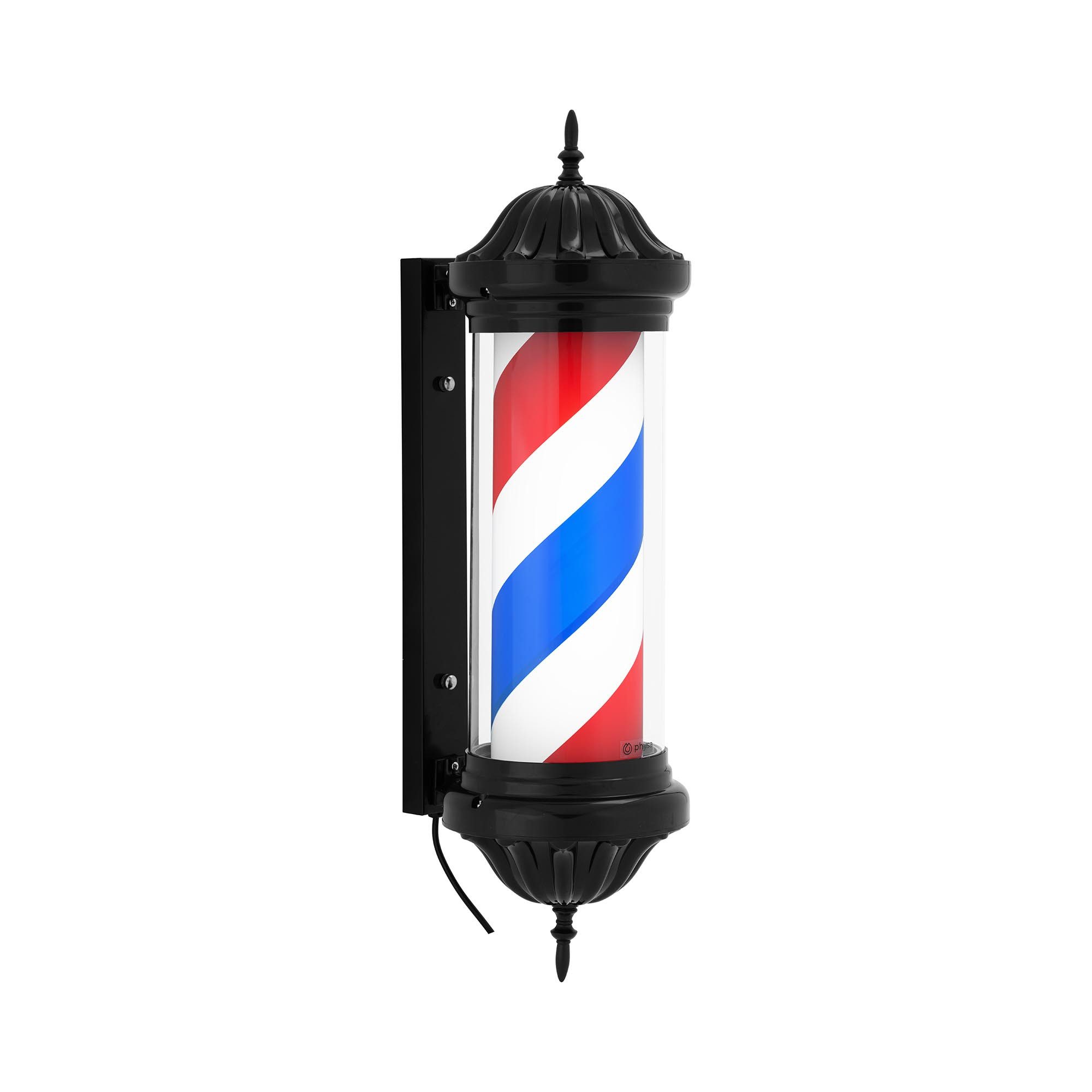 Eine Barber Pole ist seit Jahrhunderten das klassische Symbol für Friseursalons und Barbershops. Angeschaltet erzeugt der rotierende Zylinder die Illusion sich nach oben oder unten windender roter, blauer und weißer Linien und signalisiert damit ein geöffnetes Geschäft. Dank der integrierten LED-Beleuchtung erregen Sie auch in der dunklen Jahreszeit oder zu später Stunde die Aufmerksamkeit vorbeigehender Kunden und locken sie in Ihren Salon.